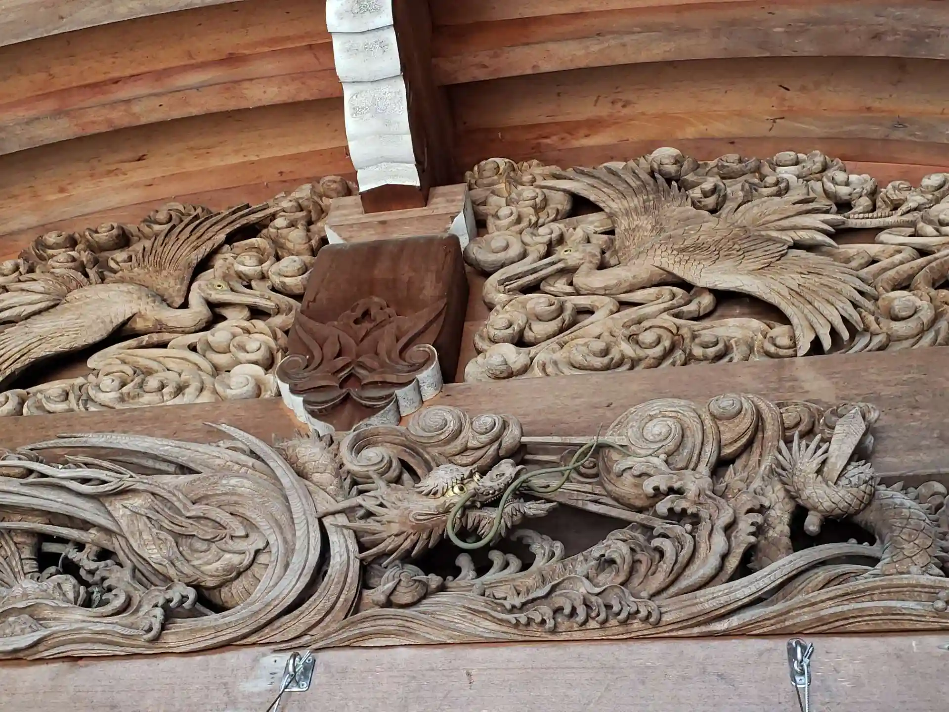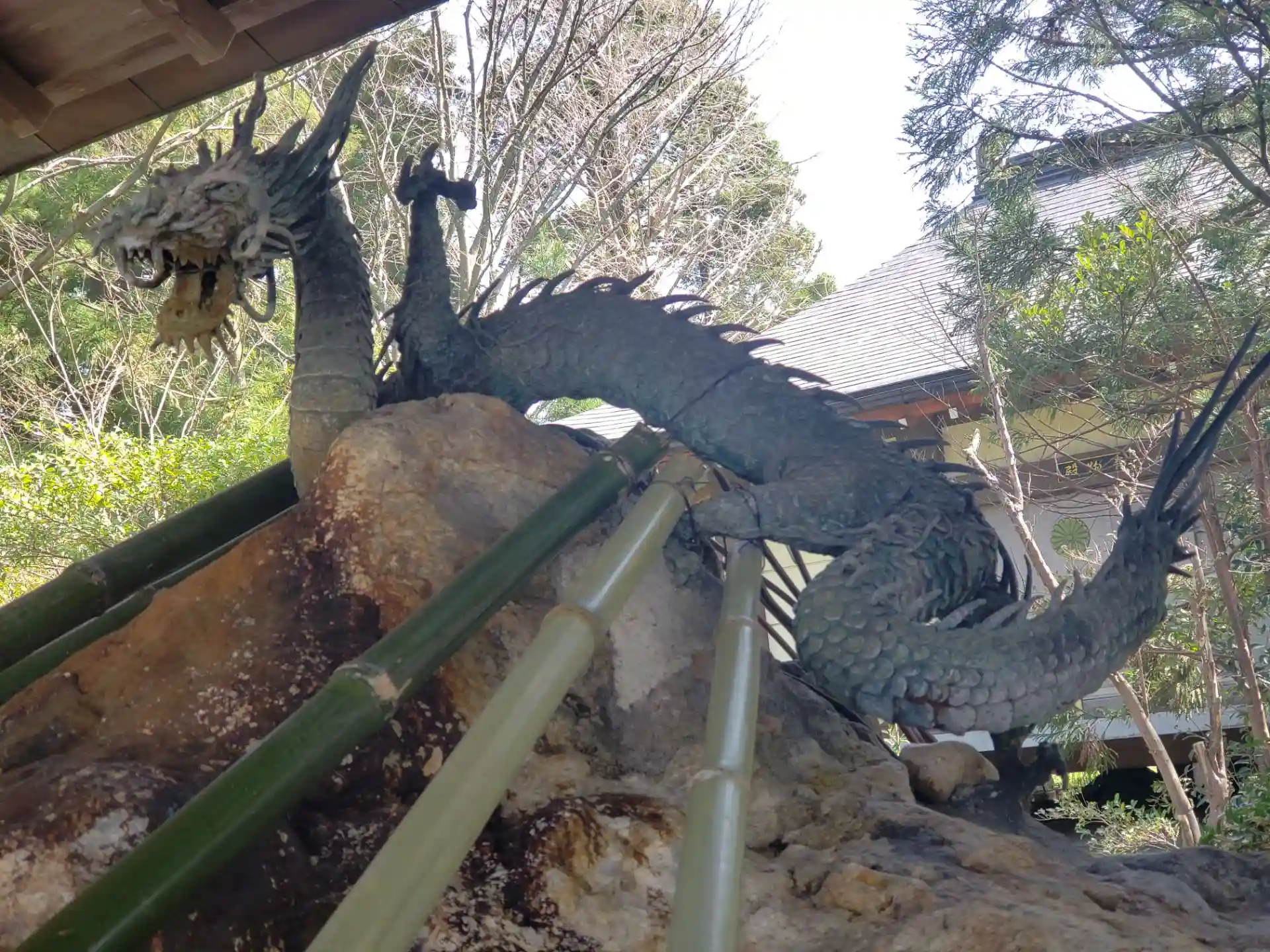 満開の桜と、竜神様にお参りしてきました。おみくじは、大吉を引き当てました。木彫りが素晴らしい神社です。