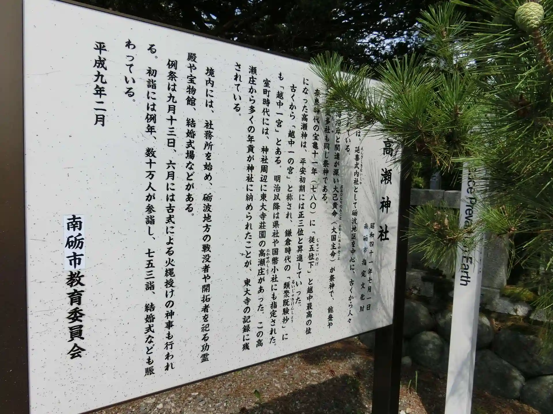高瀬神社さんの周りは田園地帯が広がっており、南には立山連峰が望みます。春から夏にかけてはバイクでツーリングしているだけで気分が晴れ晴れとしてきます。
