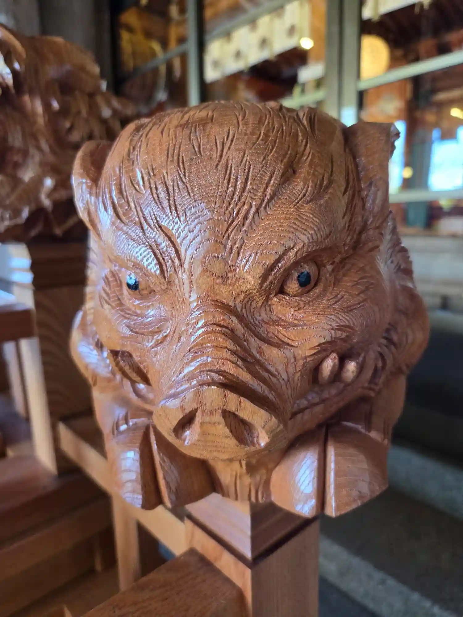 賽銭箱の上に干支木彫り人形が置かれておりました。