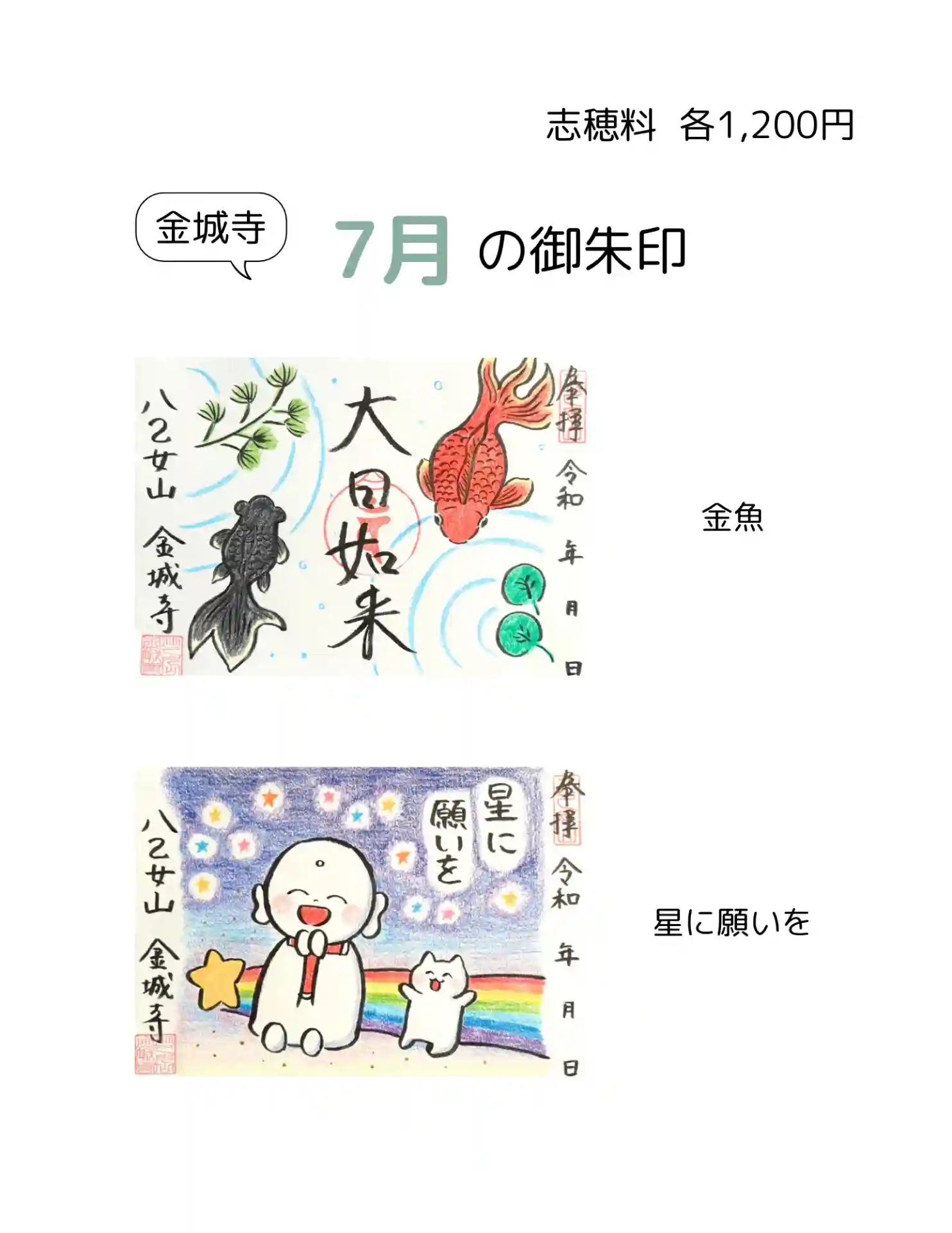 金城寺 7月の御朱印2体