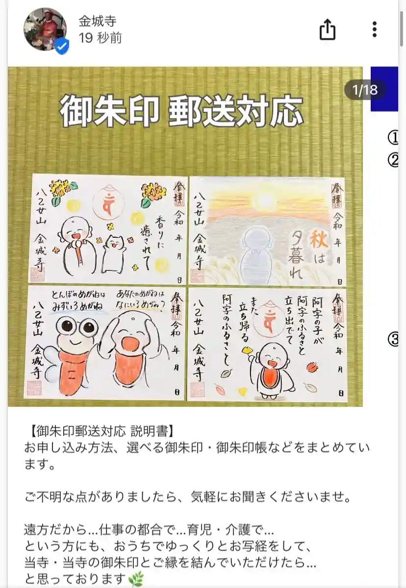 金城寺郵送御朱印について 18ページ目