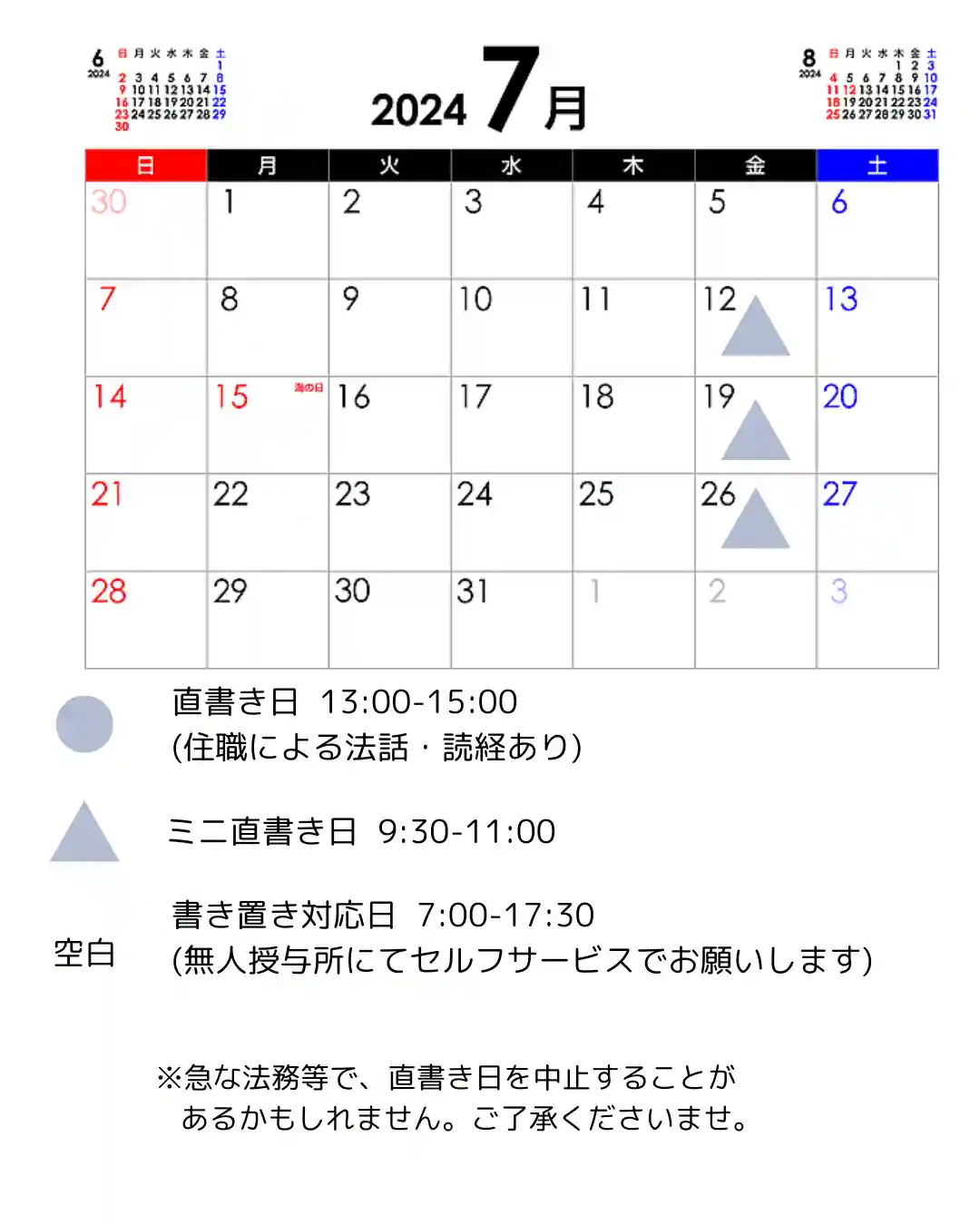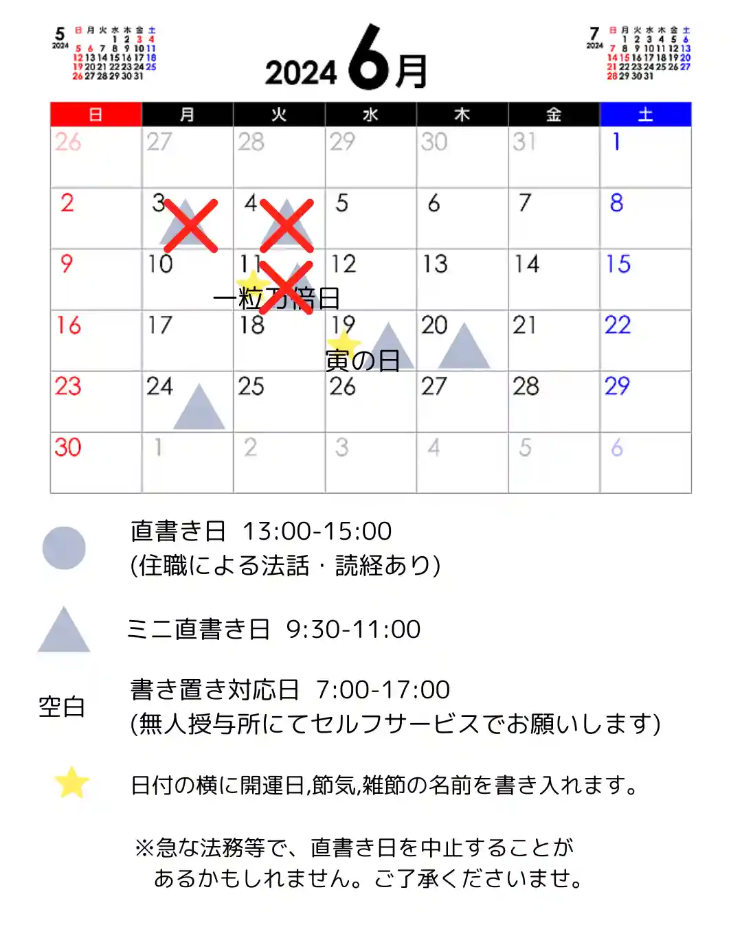 直書き&法話の日をお知らせいたします!💁♀️
