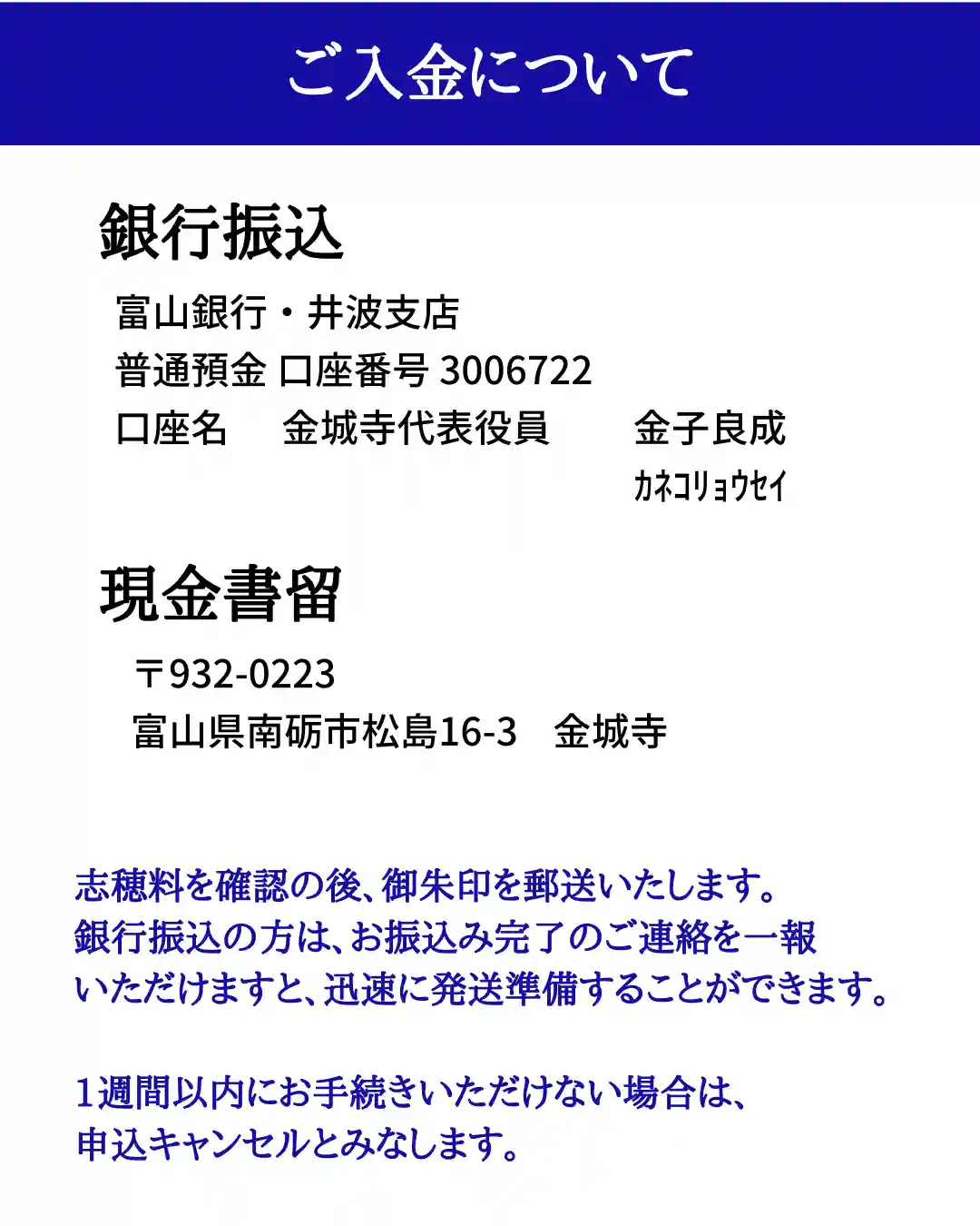 金城寺郵送御朱印について 15ページ目