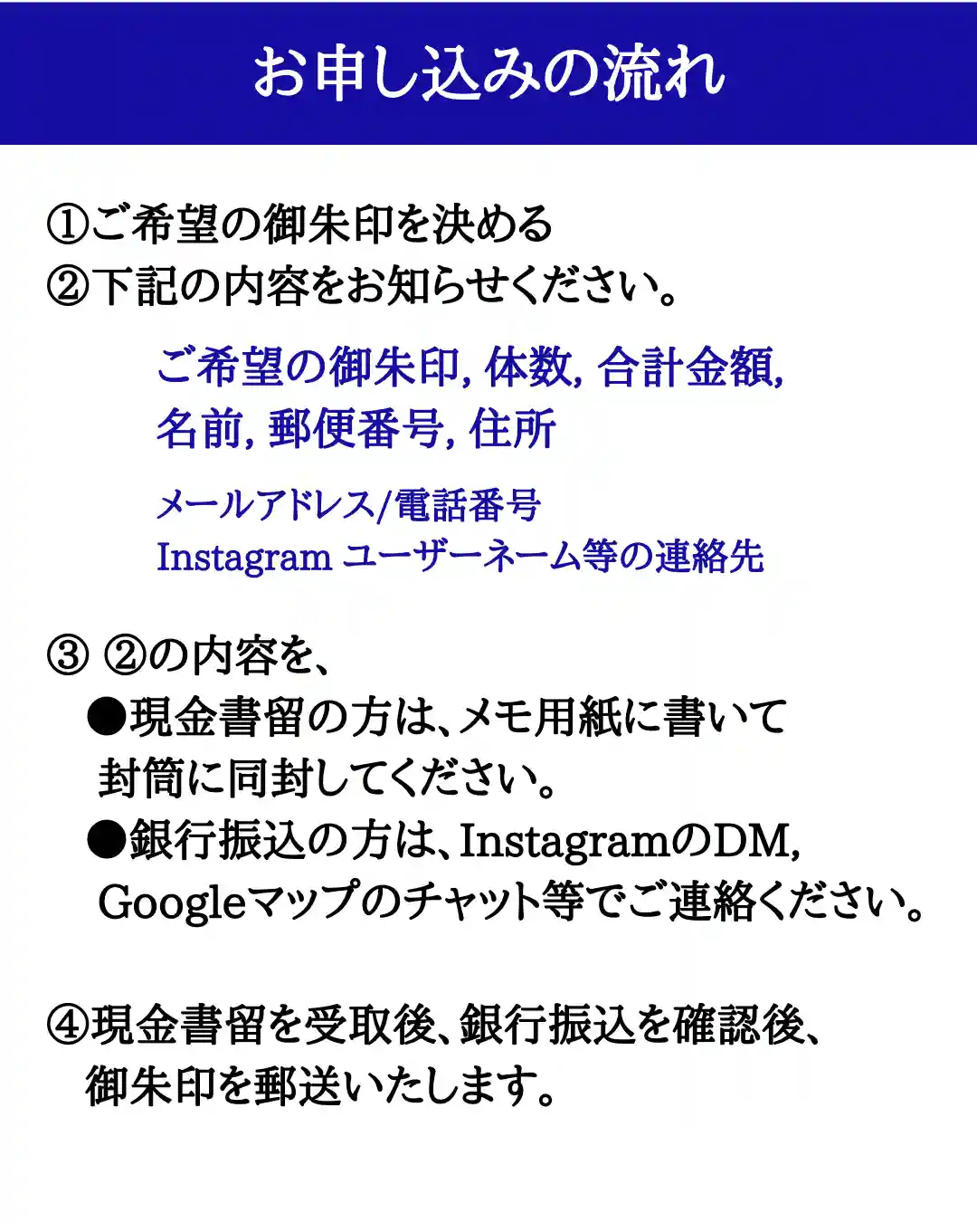 お申し込み方法、選べる御朱印・御朱印帳などをまとめています。