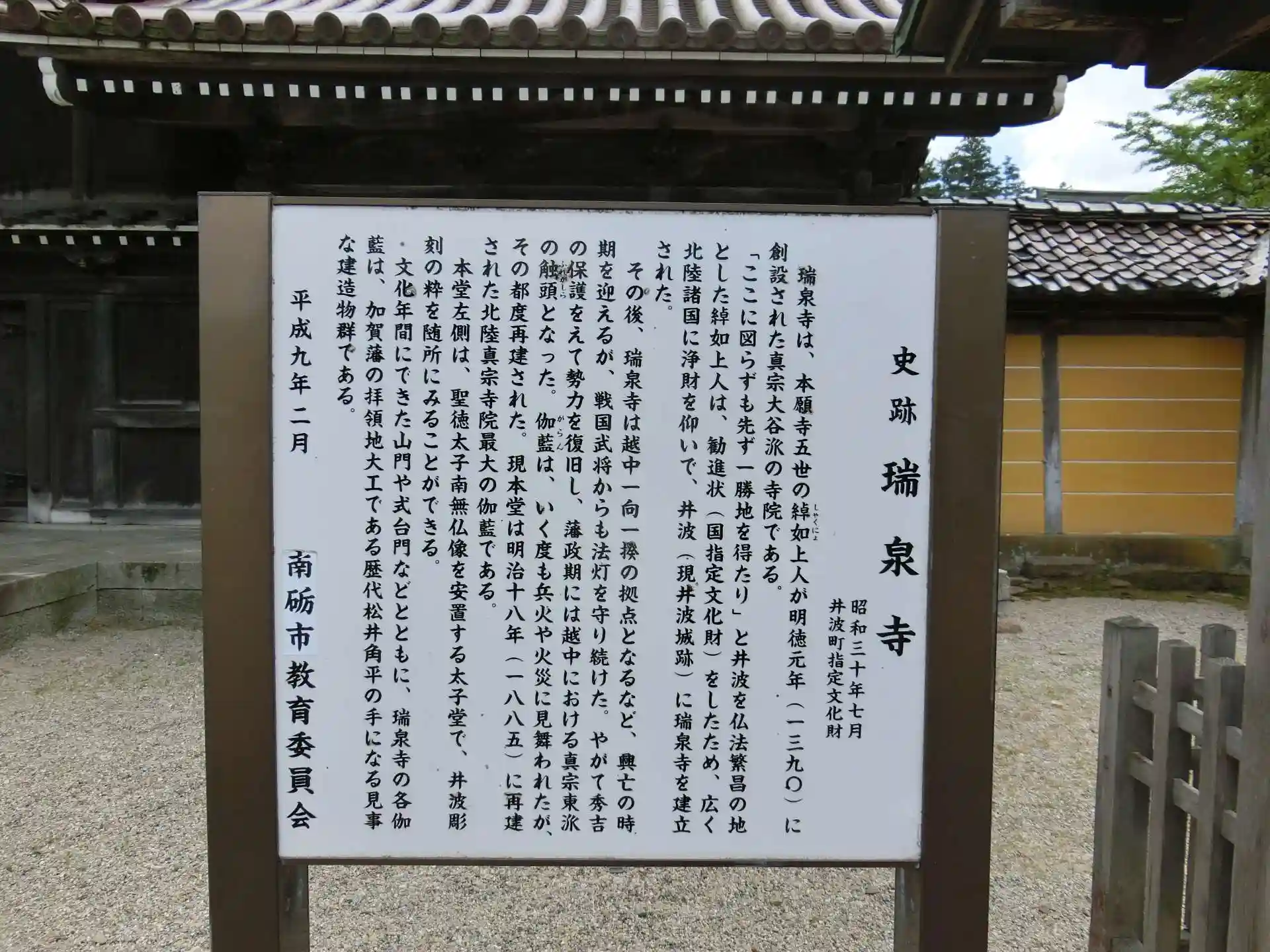 近くに井波城があってもともとはそちらが瑞泉寺さん境内だったみたいです。その寺の跡地に佐々成政がお城を作ったみたいです。