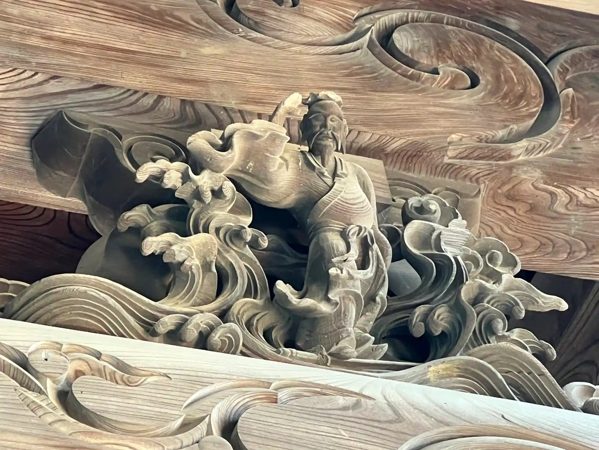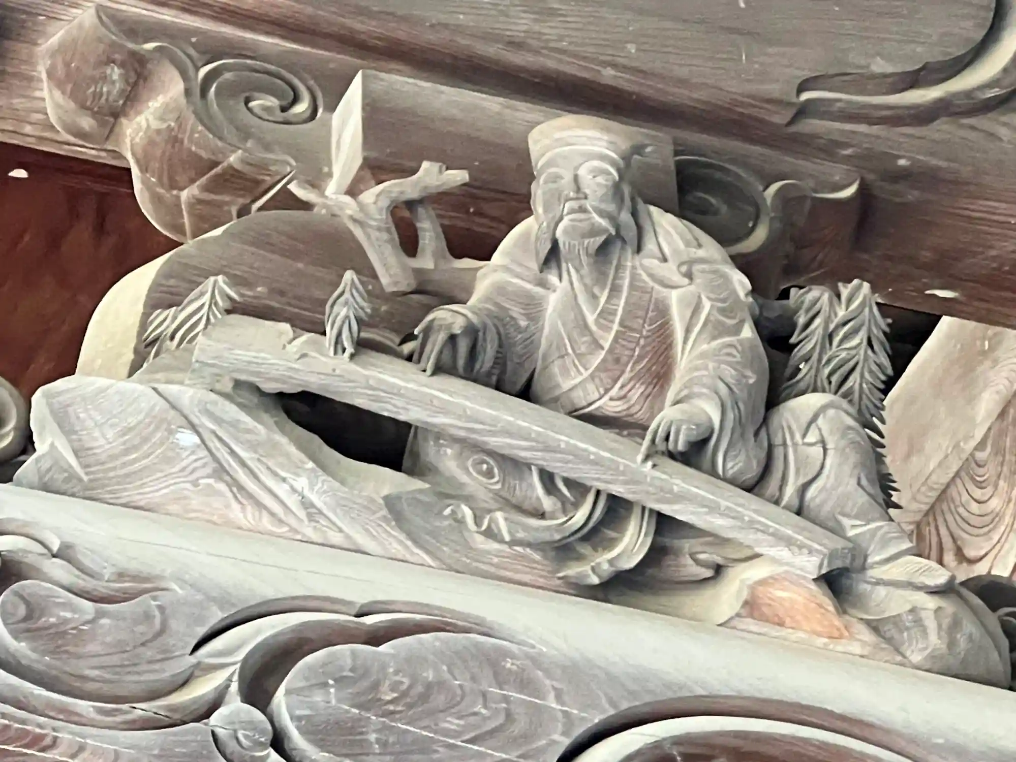 <山門>の1階部分上部蟇股の彫刻「八仙」③。
