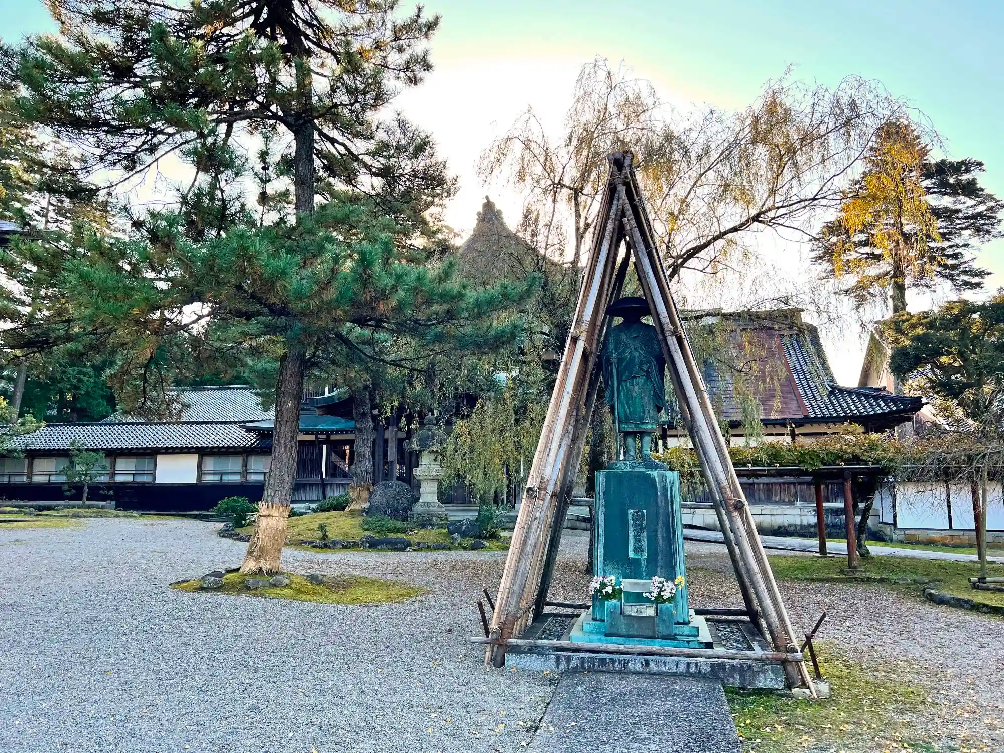 本堂までの間にある<弘法大師像>。被せてあるのは雪囲いかな?越冬準備完了みたい。