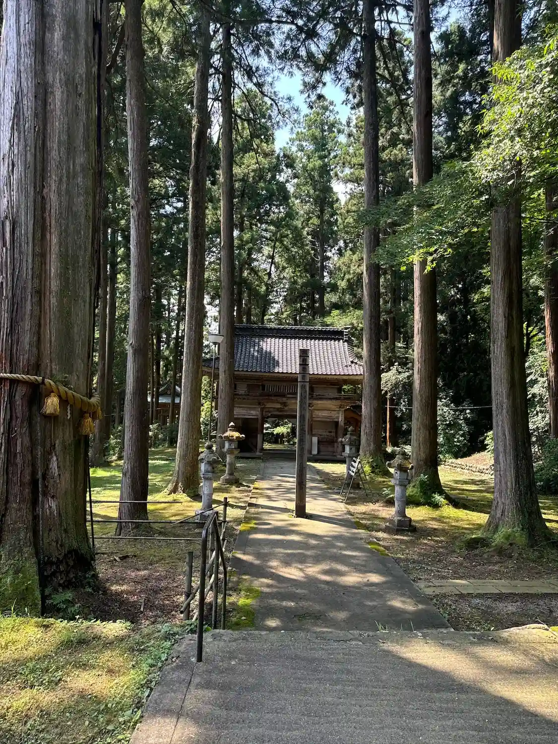 福光駅から漕げば意外に近場。彫刻の彫り、御神木、門を守る鬼たち、威容あり。