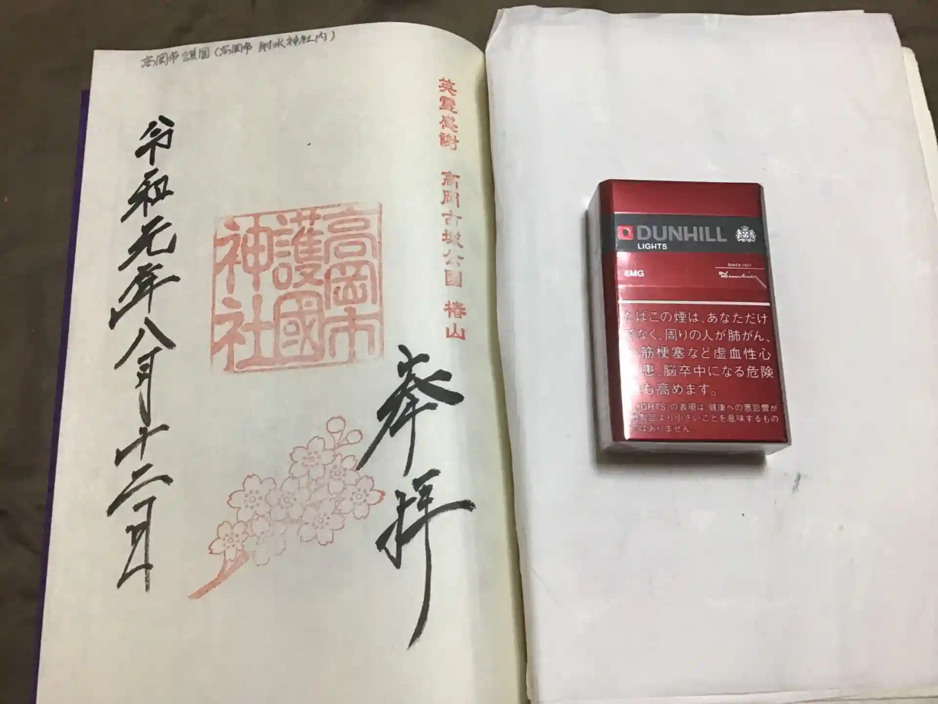 御朱印は、自前の護国神社朱印帳 ノートサイズにいただきました。