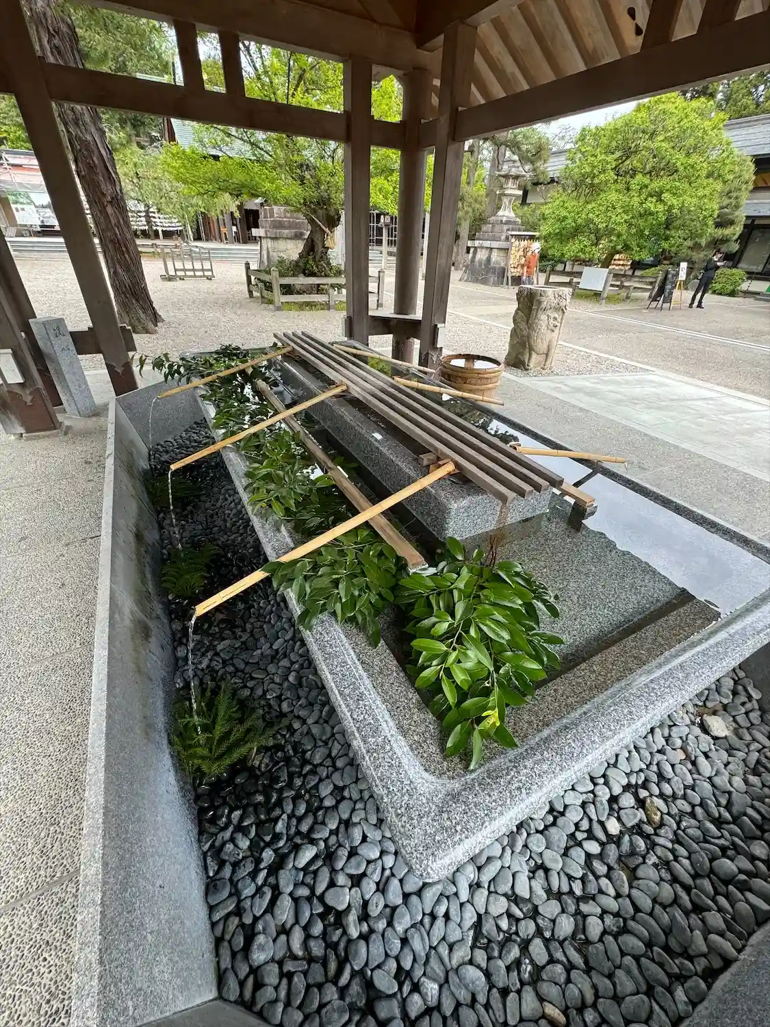 神社の周りが堀で囲まれてて神聖な空気が漂っていました。