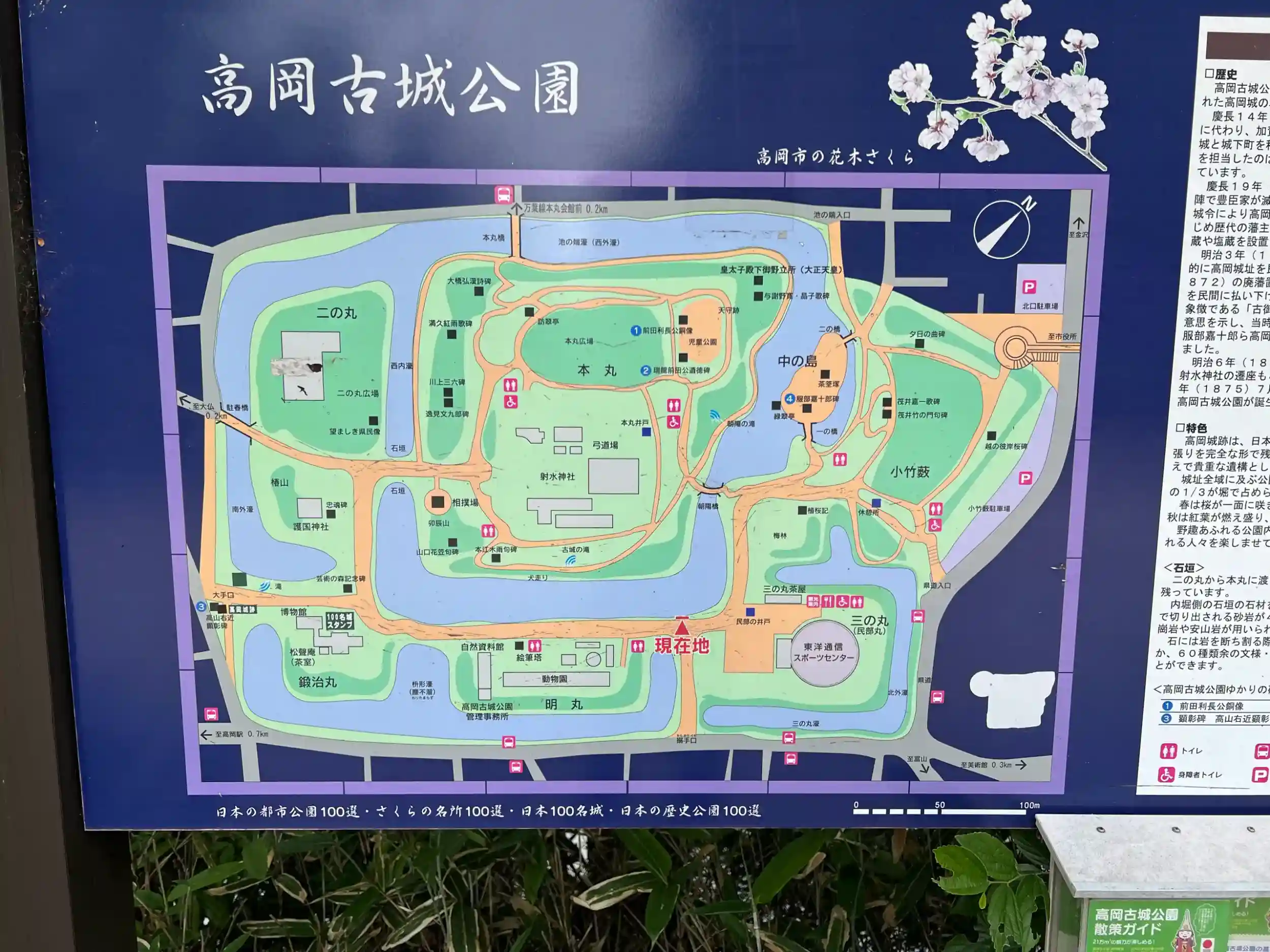 路面電車にビビりながら射水神社へ。神社前の狭い道に半泣きになりながら到着するも、神社側の駐車場が侵入禁止になっていたため公園を挟んで反対側の駐車場に。
