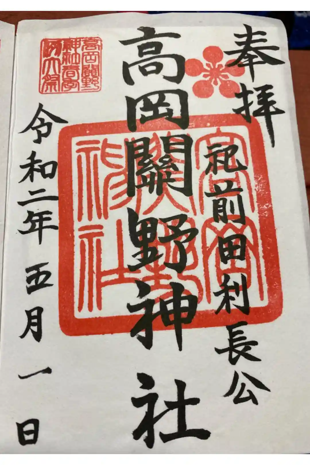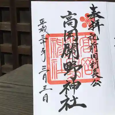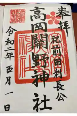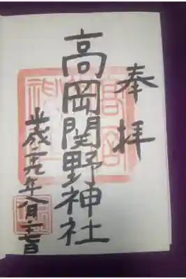 高岡関野神社の御朱印 写真一覧