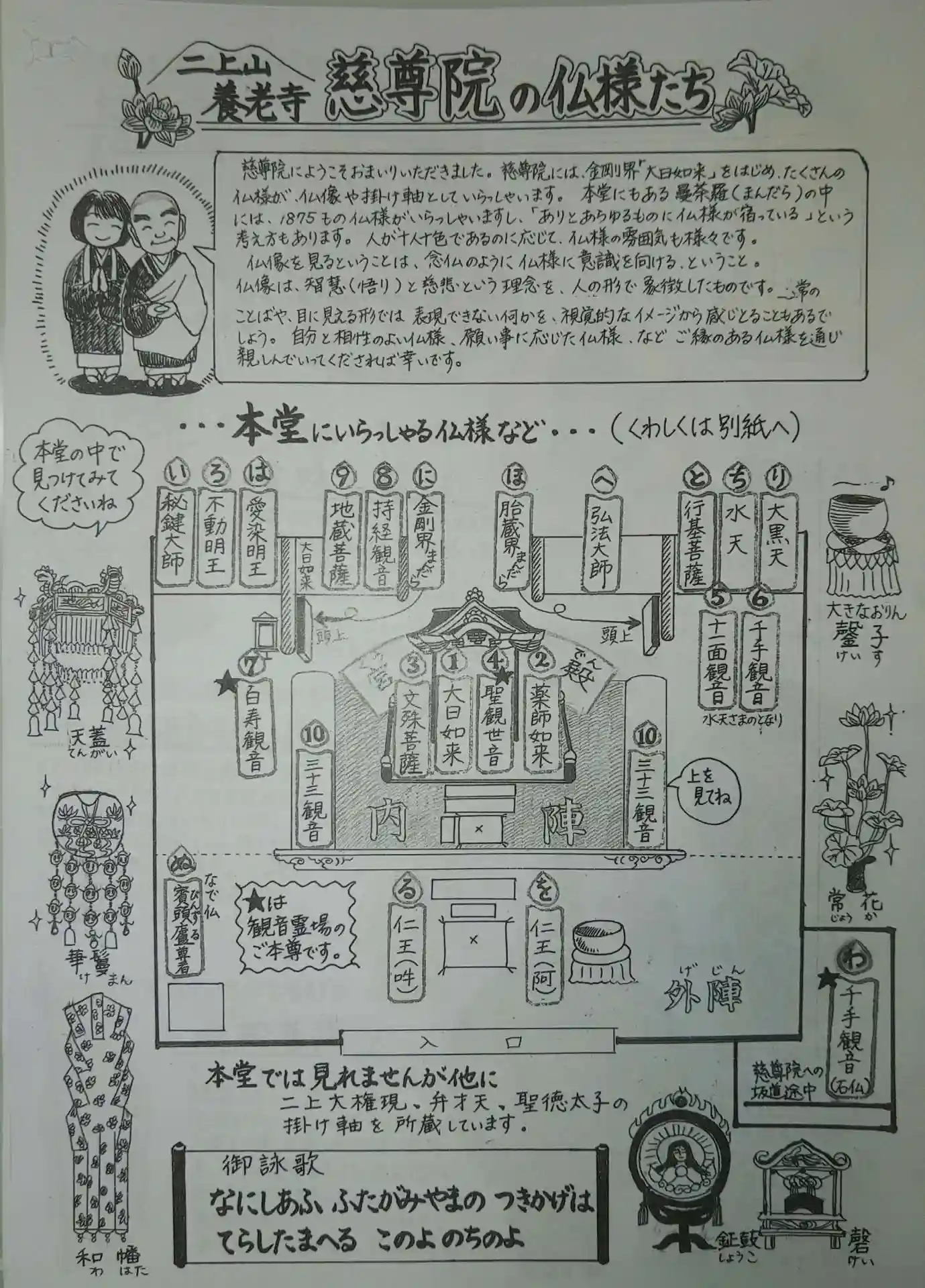 丁寧で可愛いイラスト入りの本堂案内紙は子供達にも仏様がわかりやすく伝わると思いました🙂🙏