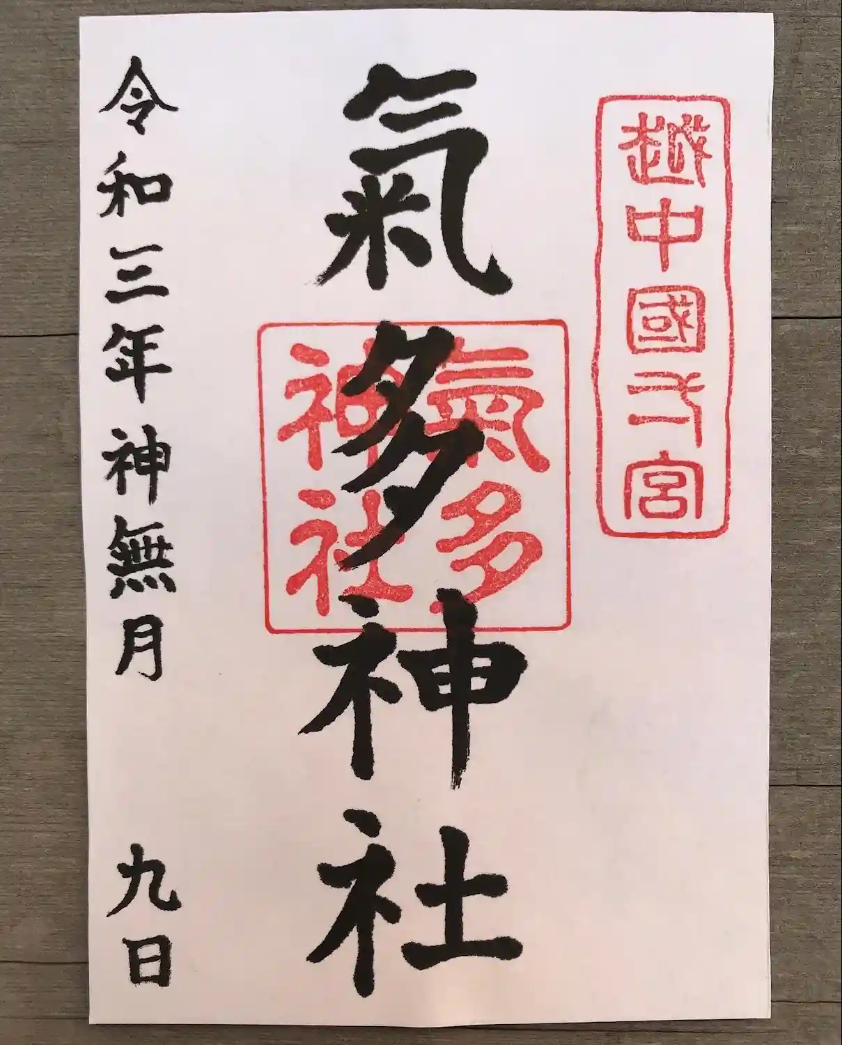 気多神社の御朱印