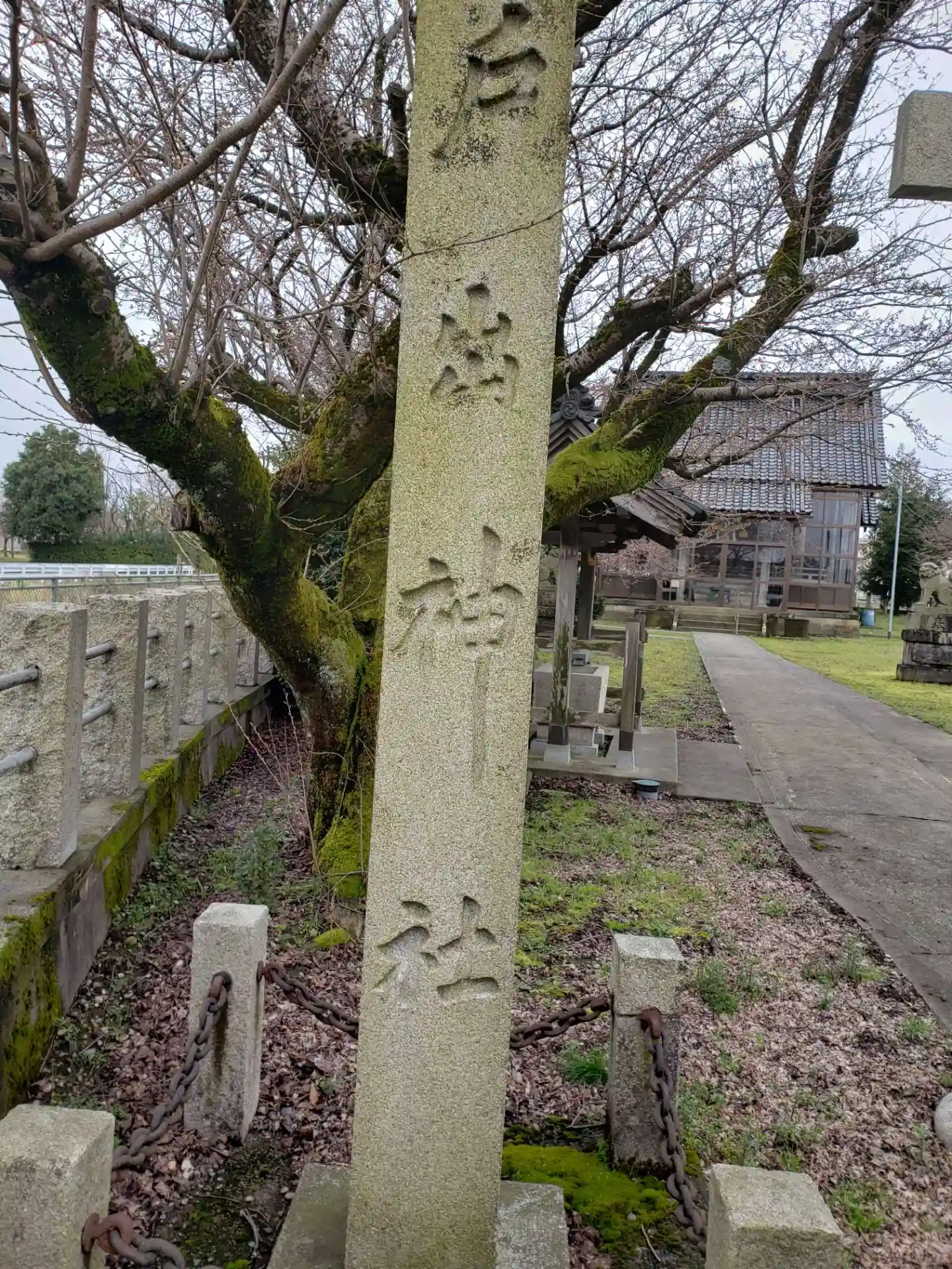 桜が少し咲いています。天照大神をお祀りしている神社です。