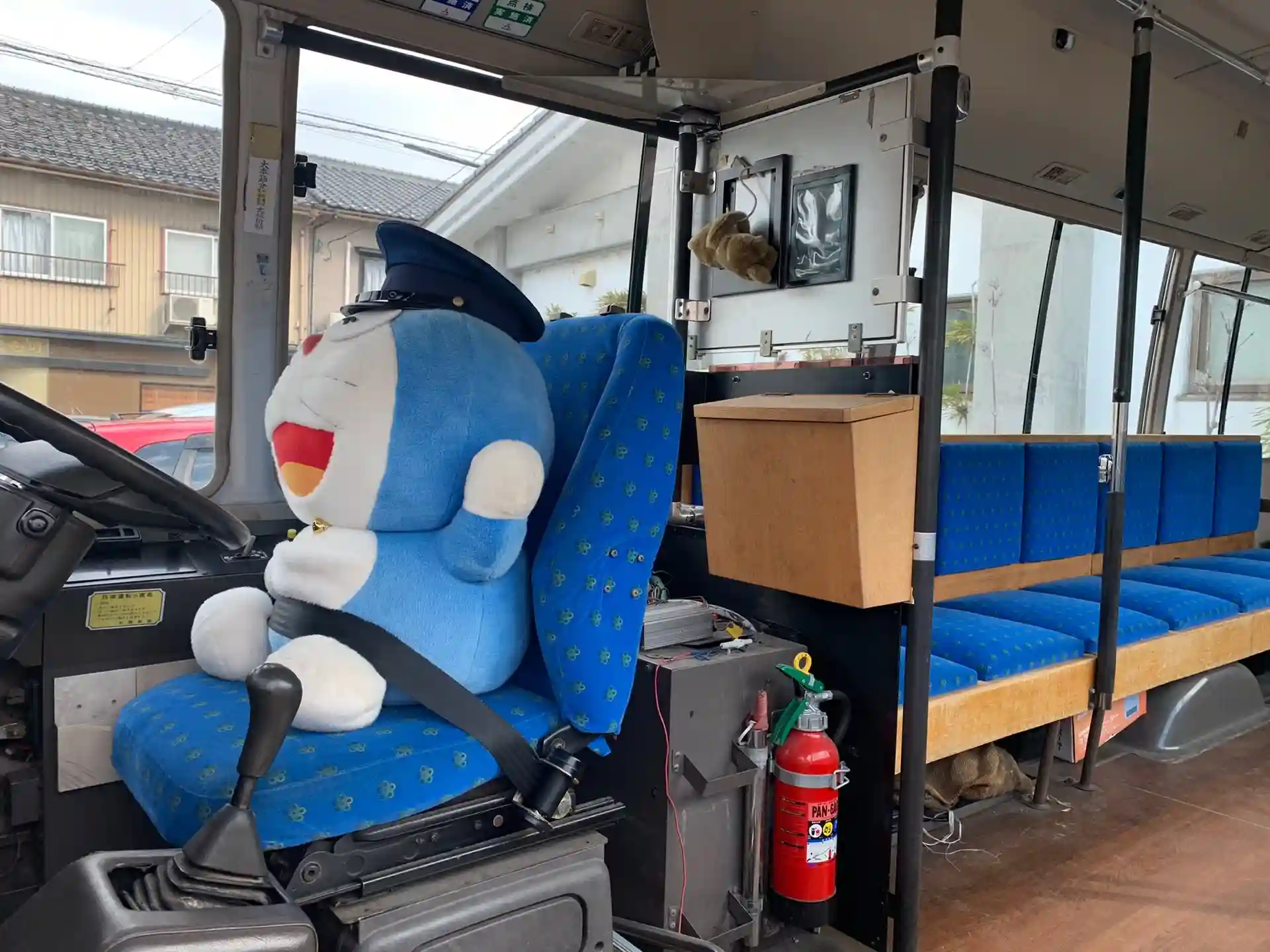 瑞龍寺さんのレトロバス🚌にドラえもんがいましたよ。ガラスに姿が写り込んだので残念ながらバスの写真は投稿出来ませんでした😅