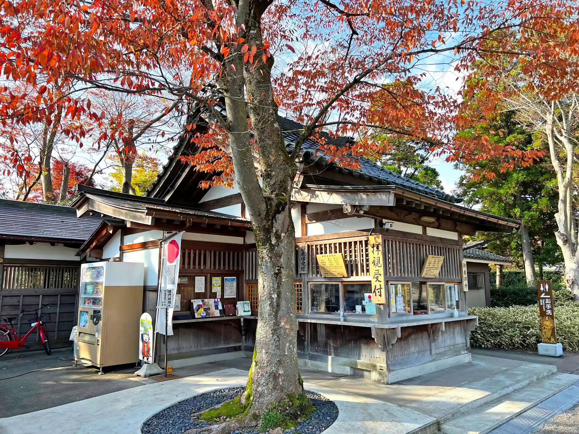 境内入口にある<拝観受付>。御朱印はこちら。御朱印帳を先に預けるのがおすすめ。