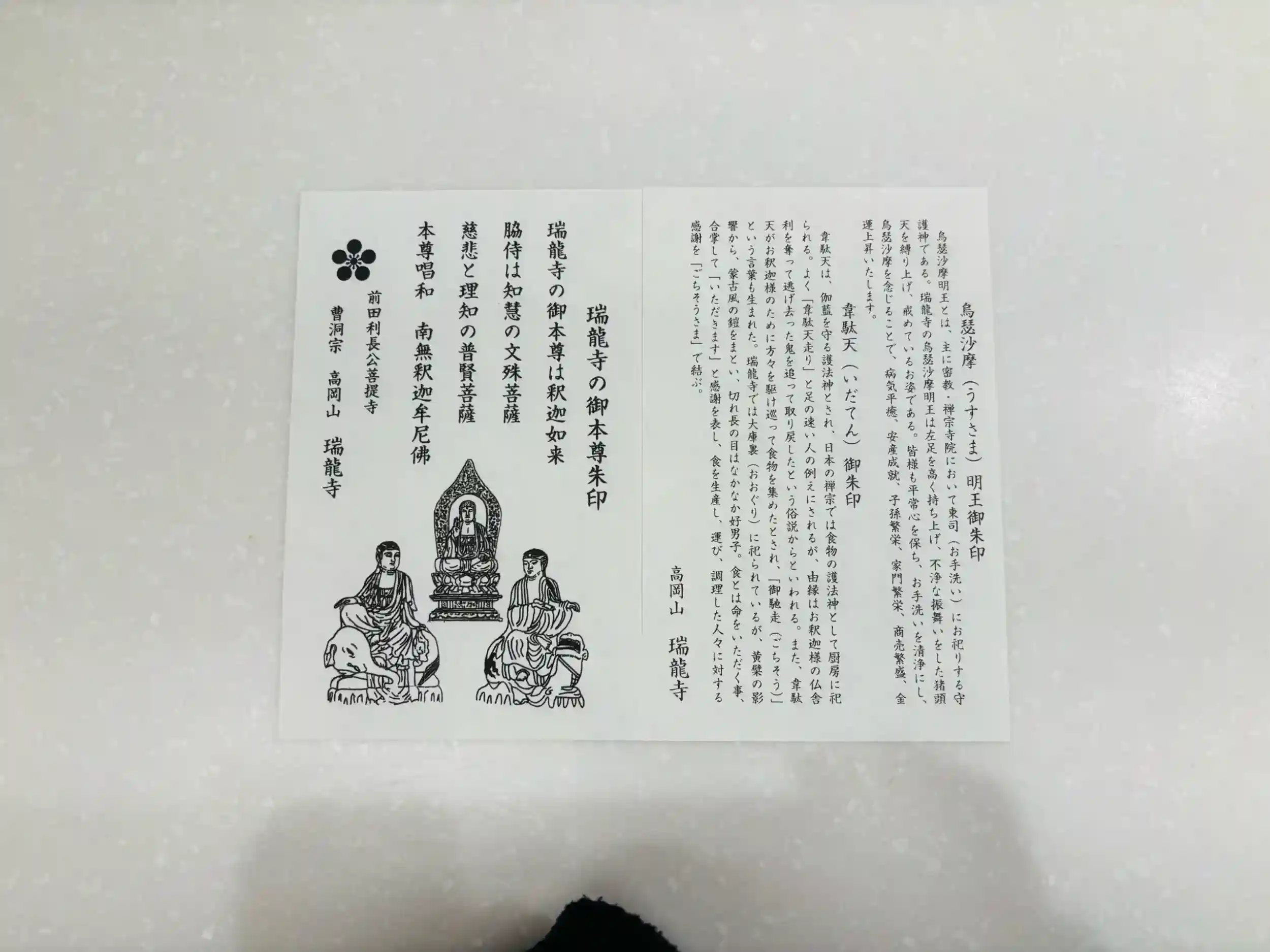 御朱印は5つくらいから選べて、迷って台所の神様という事で韋駄天を選びました。後からご利益的に烏枢沙摩明王の方が良かったかなーと後悔しましたが、、、。