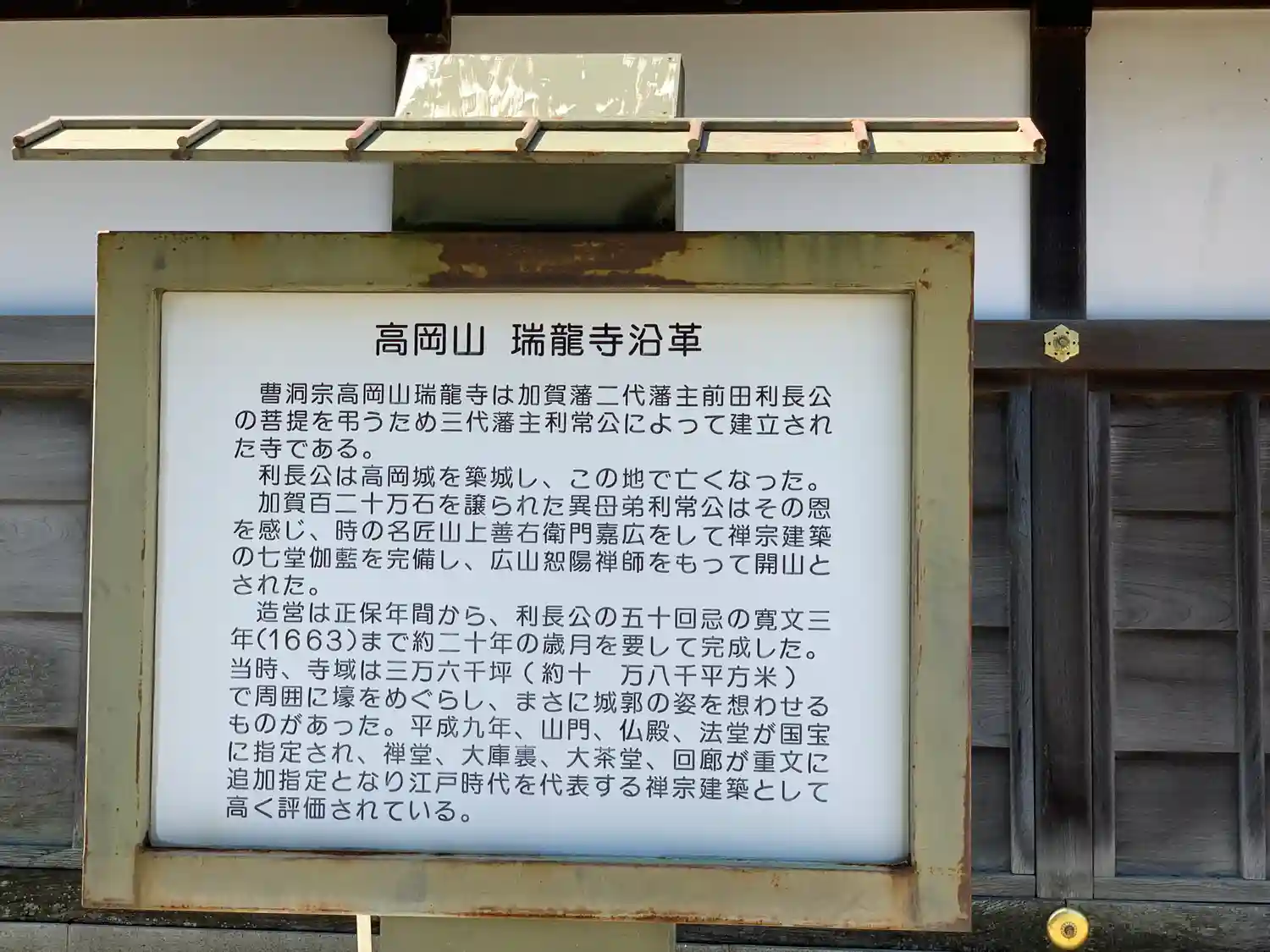 富山県高岡市の瑞龍寺、富山県唯一の国宝