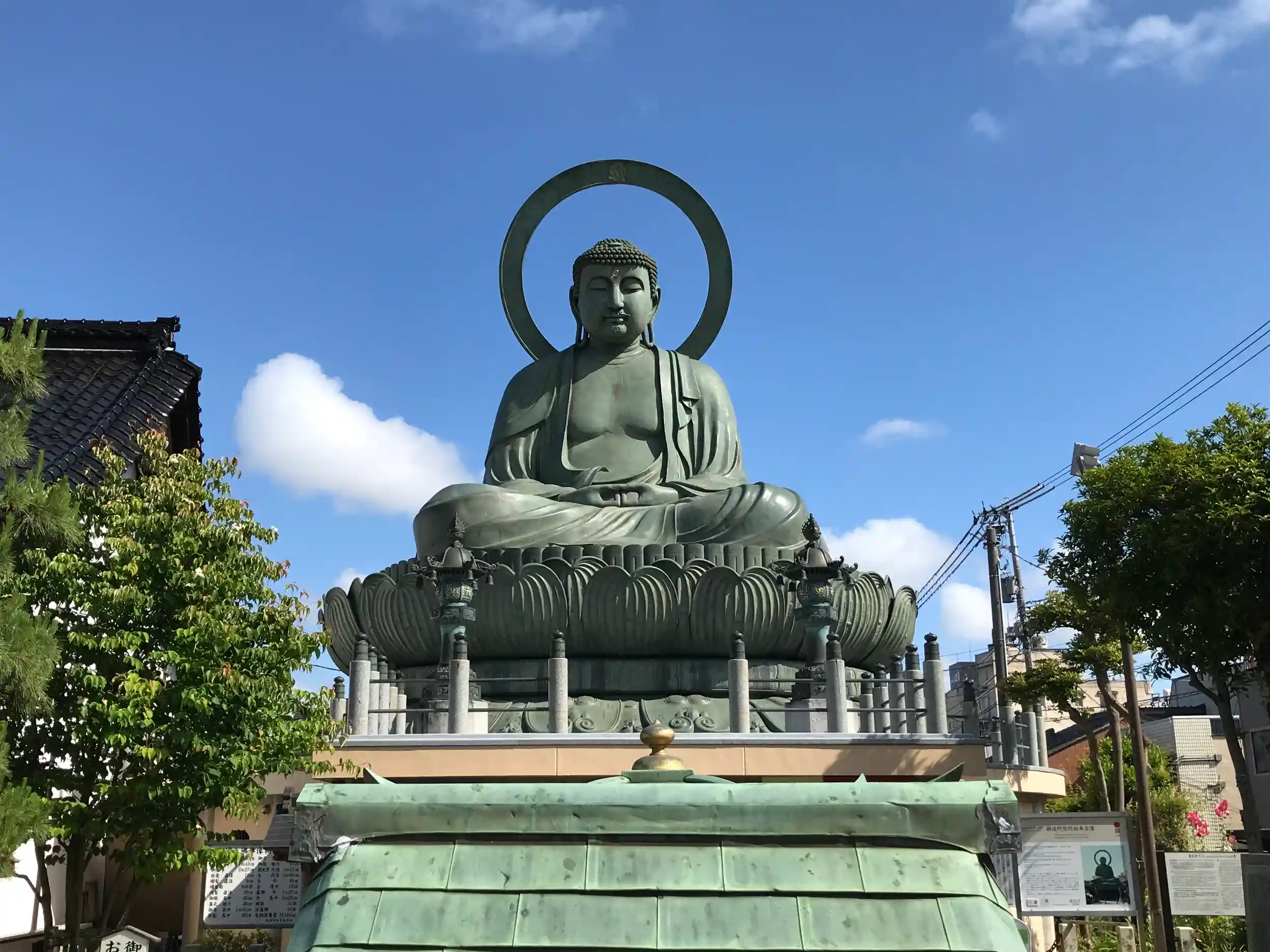 現在の大仏は1933年の建立。高さ15.85m、身長7.43m、青銅13.125トンが使われている。