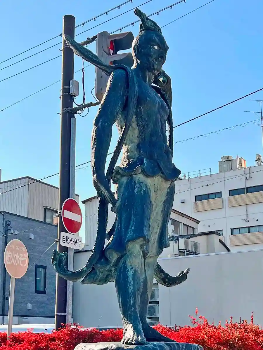 参道左側の露坐の<吽形仁王像>。現代的で細身でスマート。
