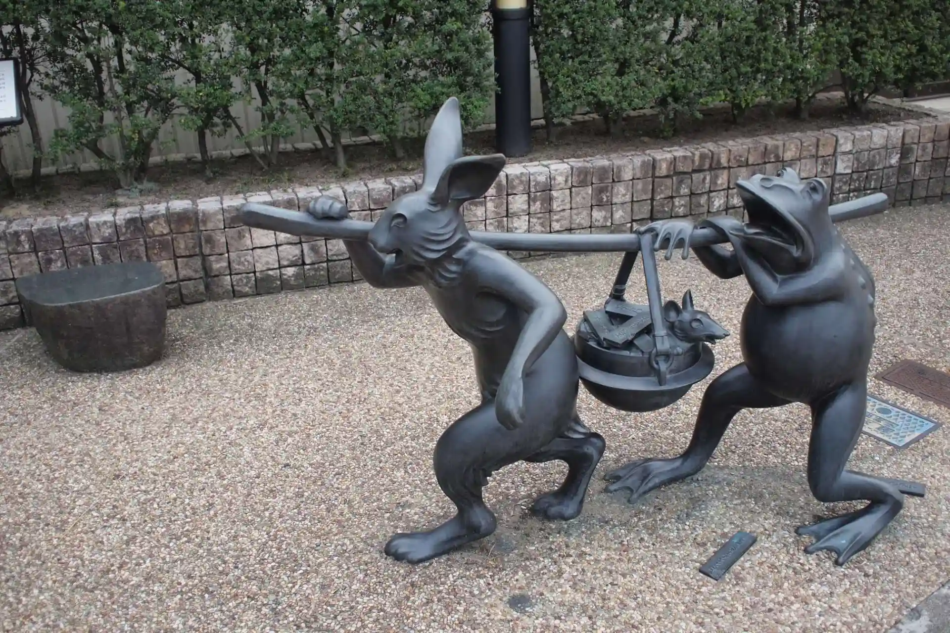 近くには鳥獣戯画のブロンズ像などがあり