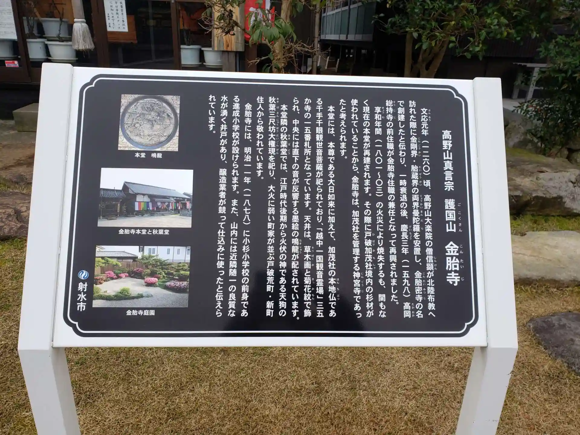 金胎寺の説明看板です。明治に小学校が建てられたそうです。