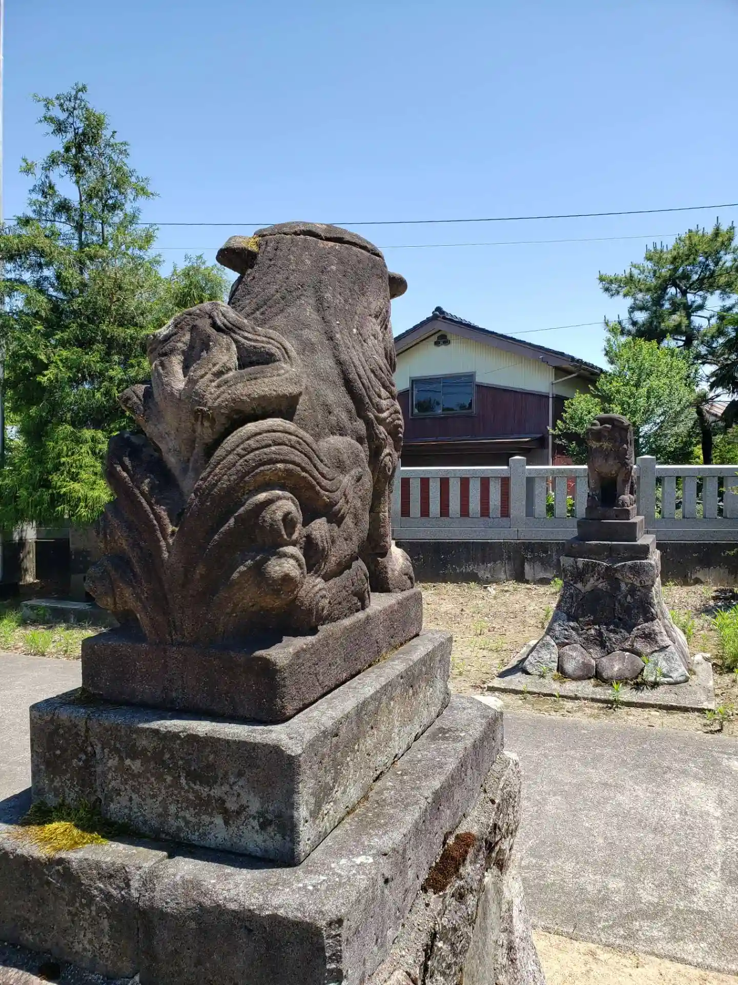 小さな神社です。通り過ごしそうになりました。真っ黒な狛犬さんが迎えてくれました。