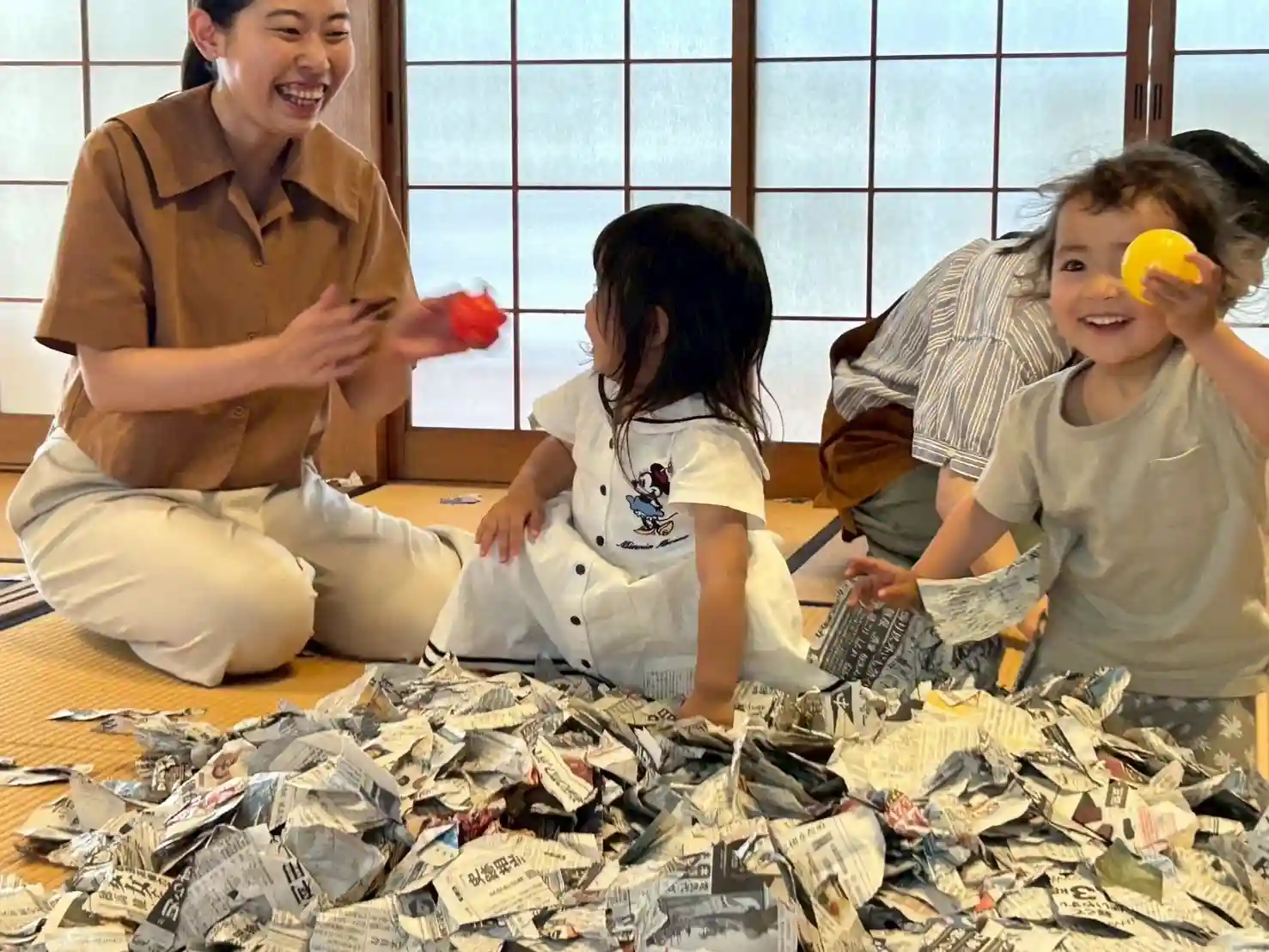 お寺で、新聞紙を使ってたくさん遊びました⭐️