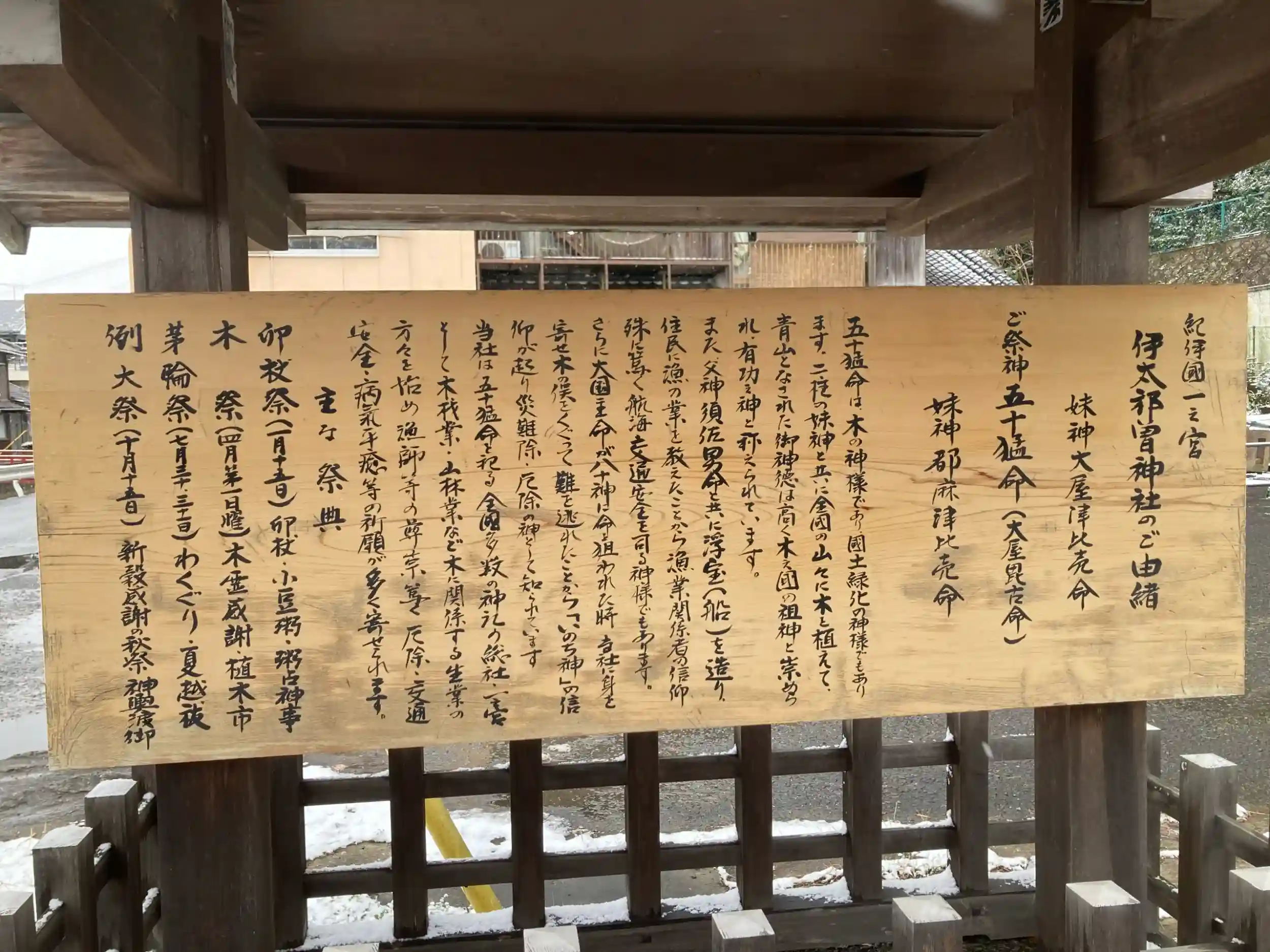 御祭神は、樹木を植えてまわったとされる木の神、五十猛命です。