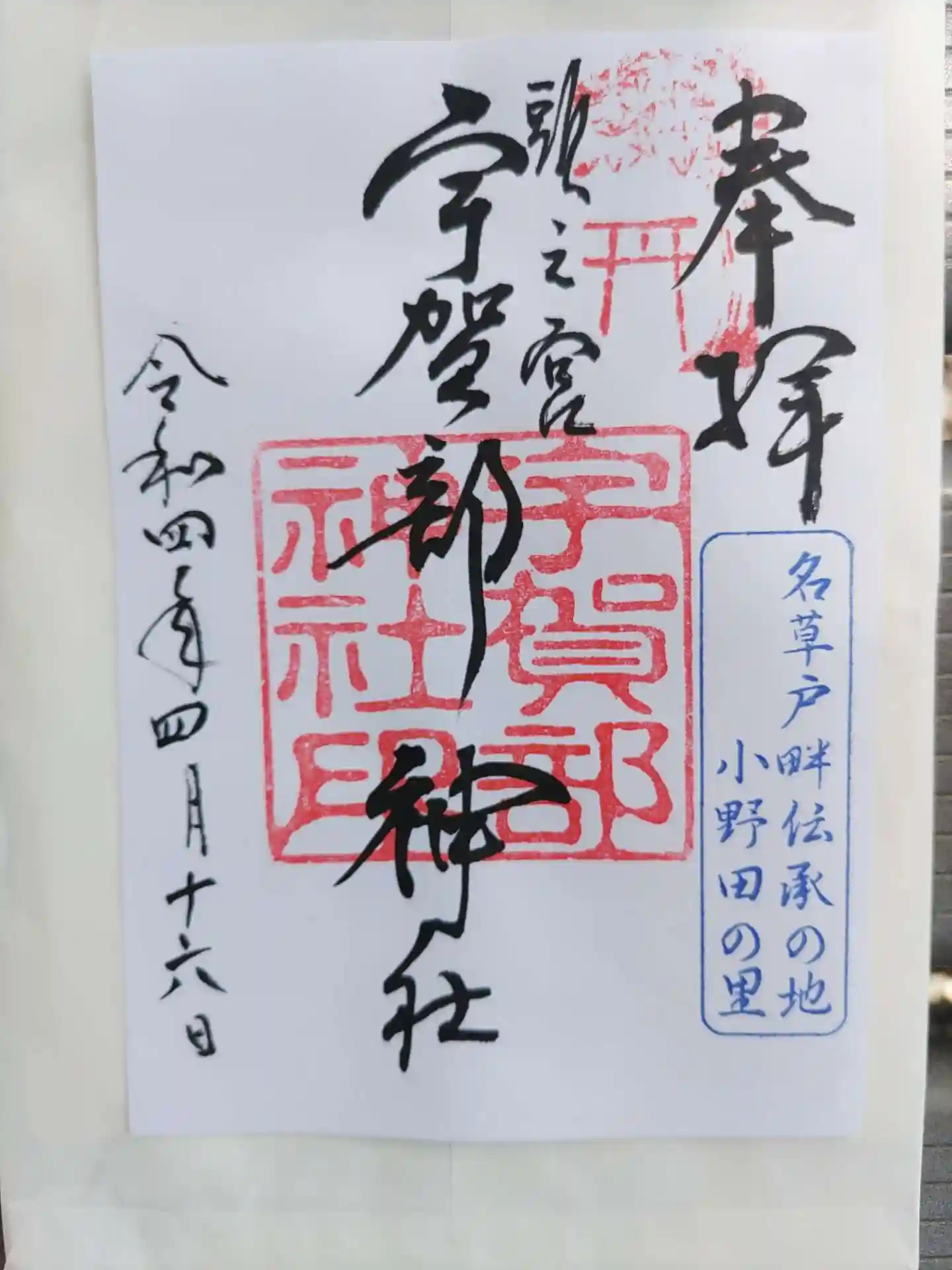 御朱印書き置きですが、宮司さんが庭掃除されていて、声かけさせてもらうと、日付を書き入れていただけました。