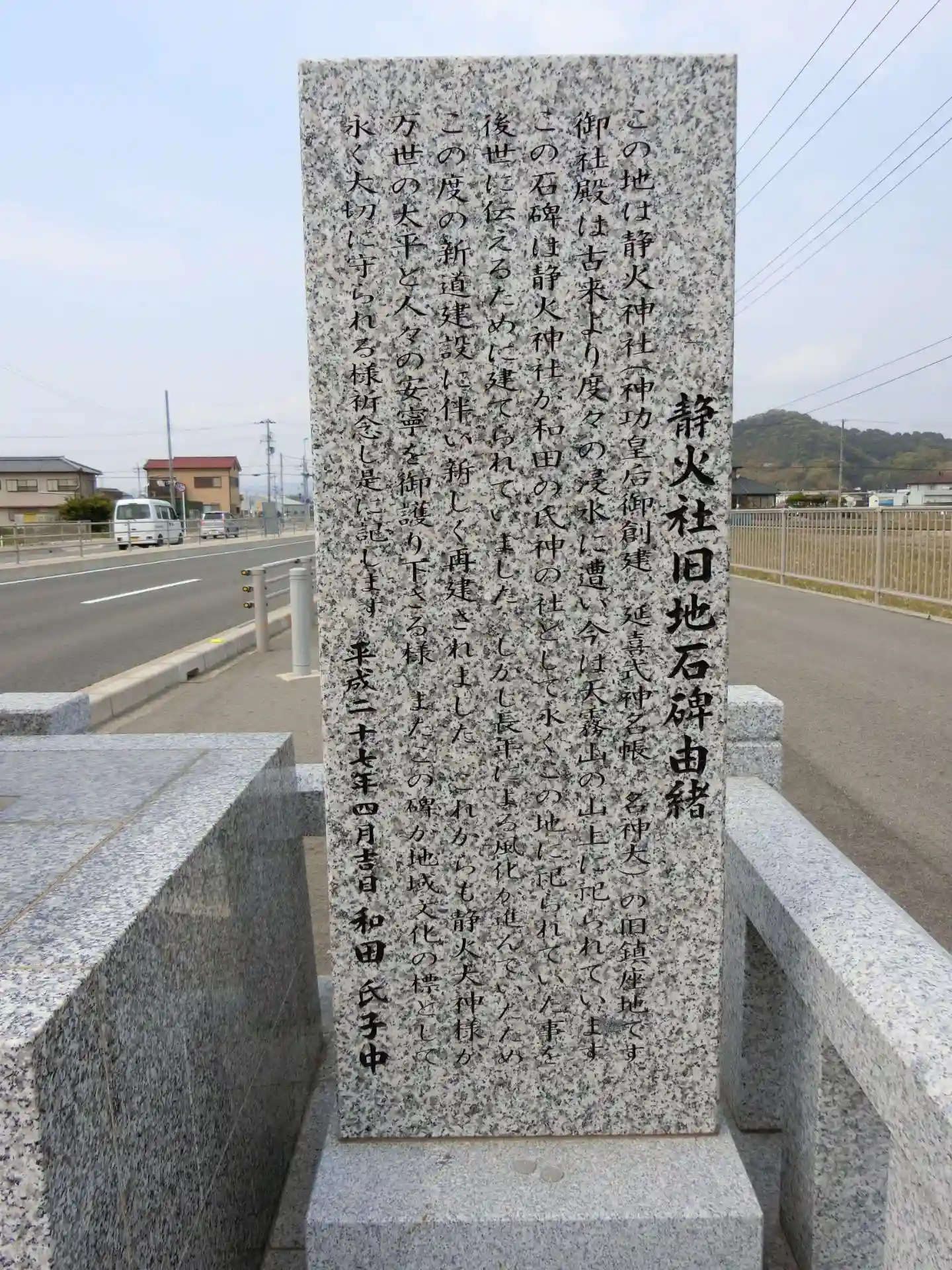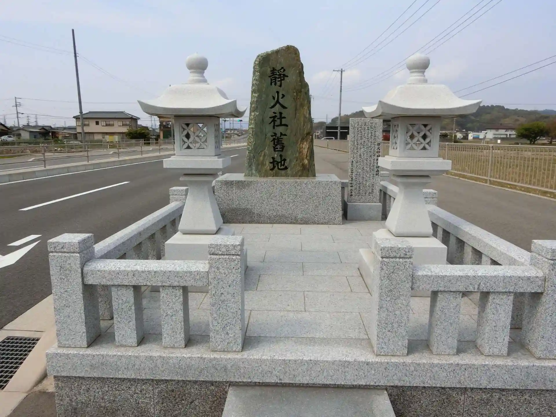 現在の鎮座地は道路の拡張によって移転した場所で、旧鎮座地は現在地より東へ約200mのところです。ローソン和歌山和田店の少し北で「静火神社奮地」という石碑が建てられています。