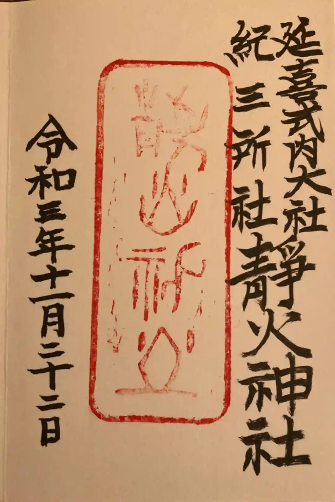 『延喜式』神名帳には名神大社として載っており、これは竈山神社より断然社格が高いです。その理由は諸説ありますが、御祭神の静火大神さまが紀伊国(木の国)においては鎮火の神様として崇敬されていたとされています。