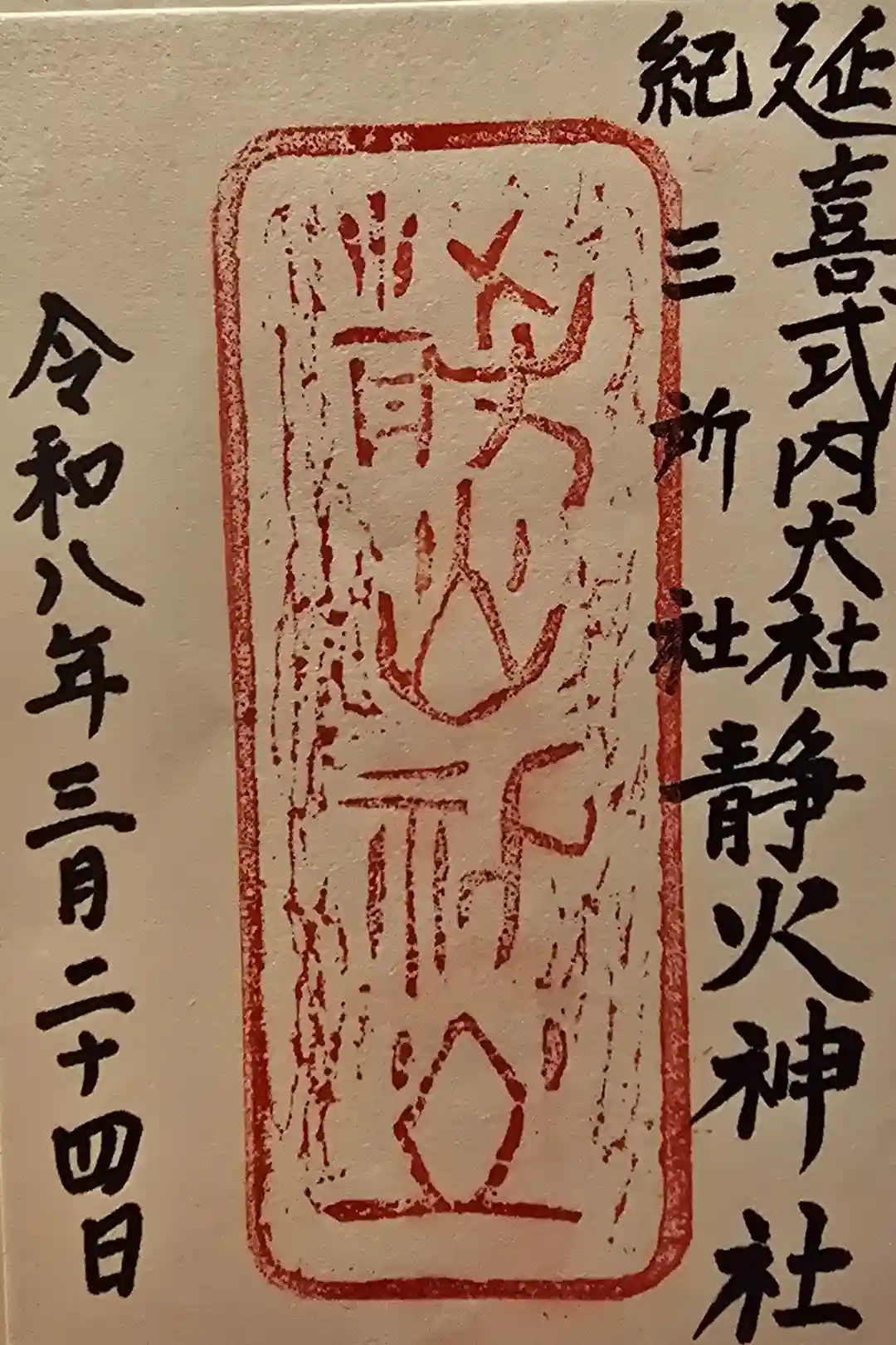『延喜式』神名帳には名神大社として載っており、これは竈山神社より断然社格が高いです。その理由は諸説ありますが、御祭神の静火大神さまが紀伊国(木の国)においては鎮火の神様として崇敬されていたとされています。