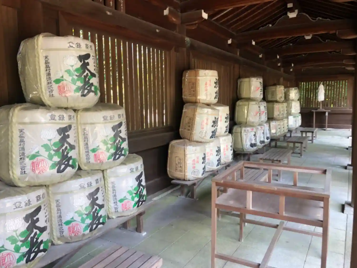 奉納された日本酒が積まれてました。