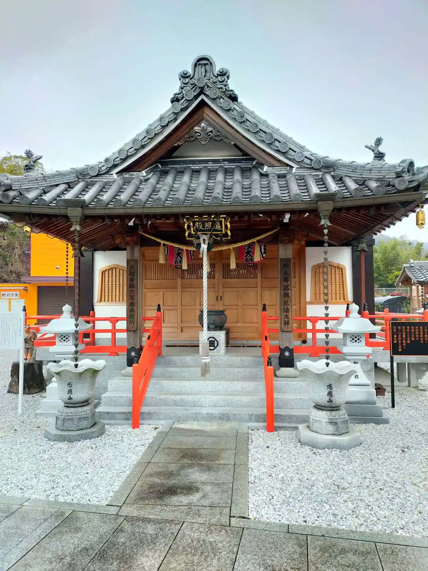 感應山霊現寺 御本尊は、一願地蔵大菩薩です。熊野古道沿いにあり、道路の両サイドにあります。駐車場あり、写真の通り、境内は広いです。