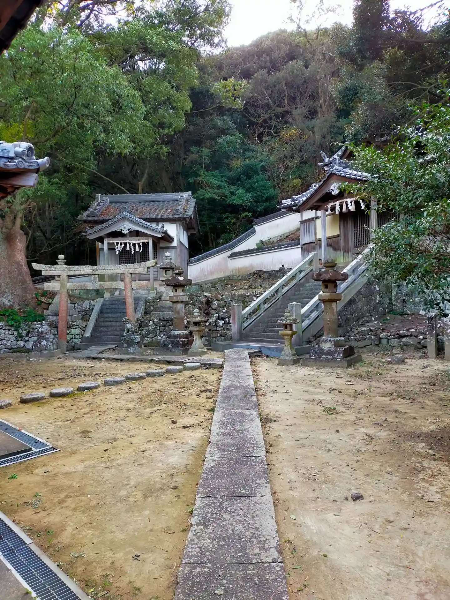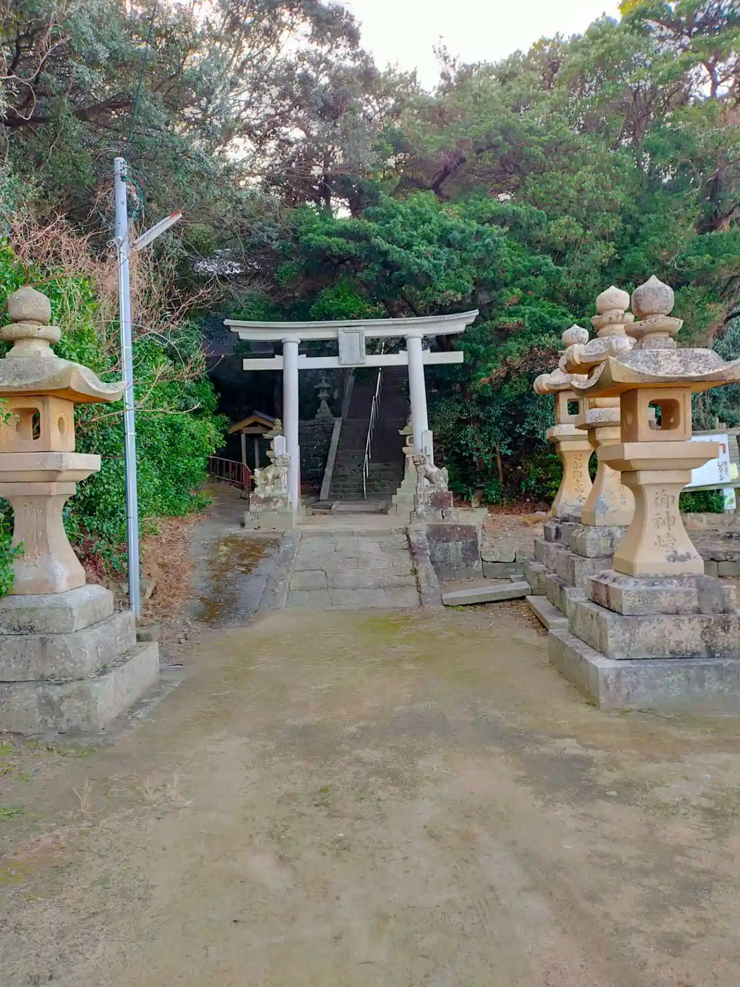 大阪との県境にあります。主祭神は、応神天皇です。境内に住吉神社?の鳥居もあります。近くに海があり、関空に離着陸する飛行機がみれます。