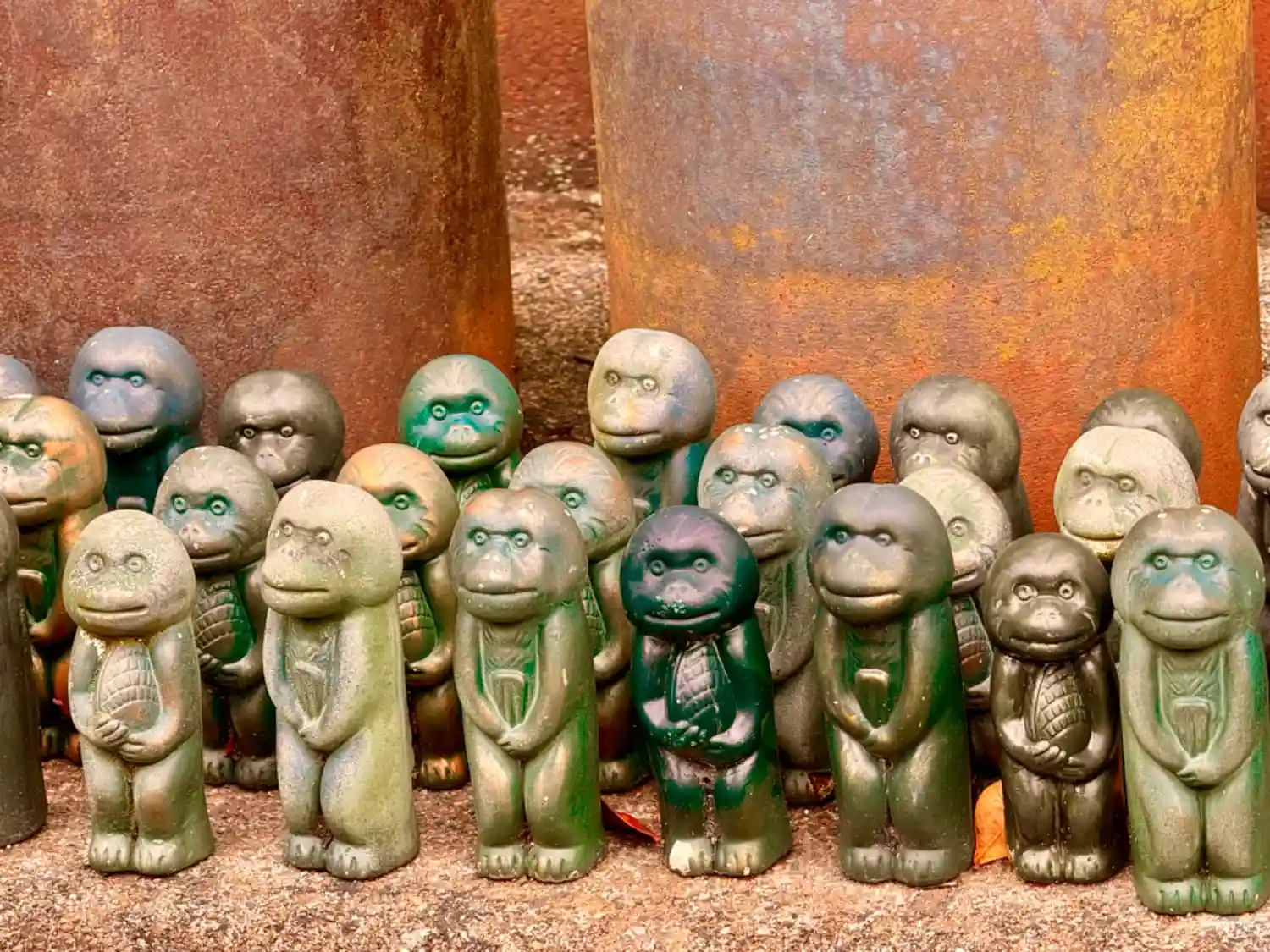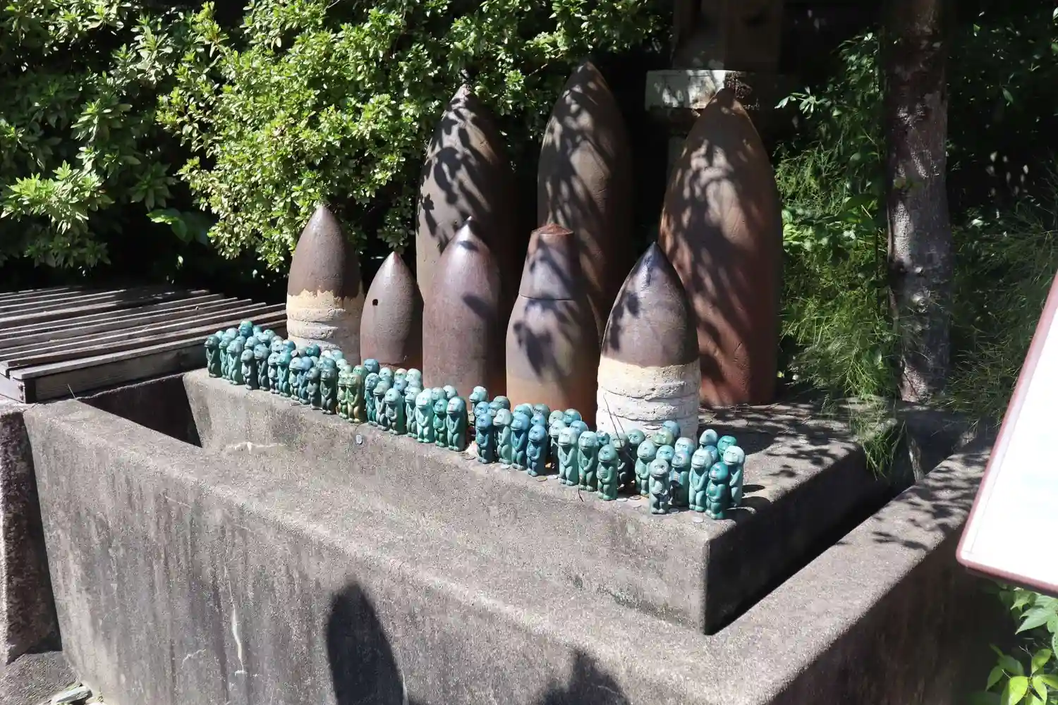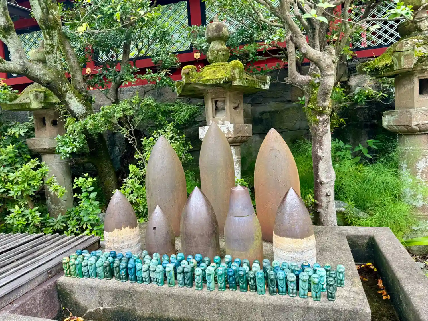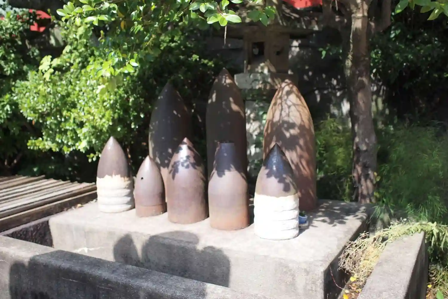 奉納された砲弾と「権現猿」の置物