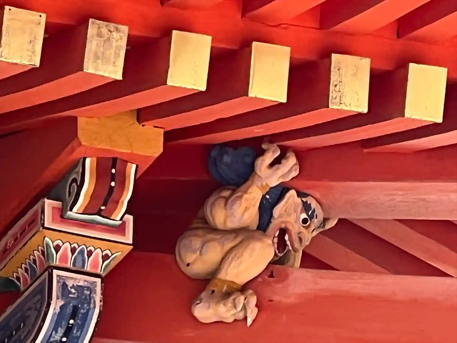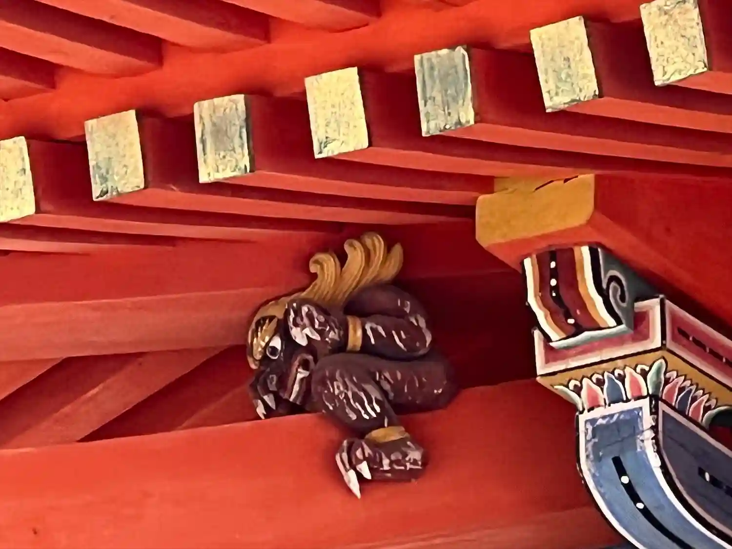 こちらから中に入り、拝殿・本殿の周囲を巡って極彩色の彫刻や壁画を拝見