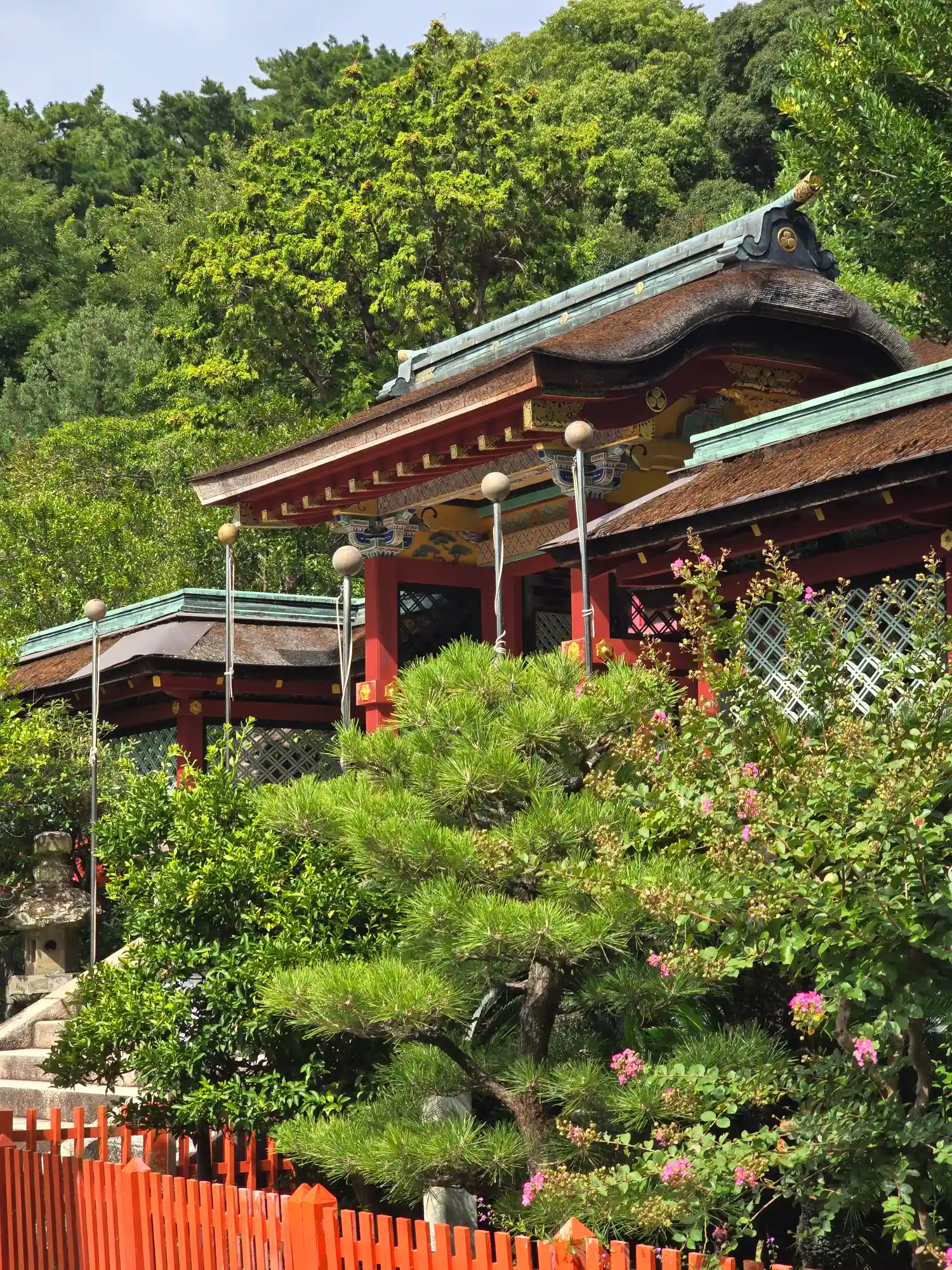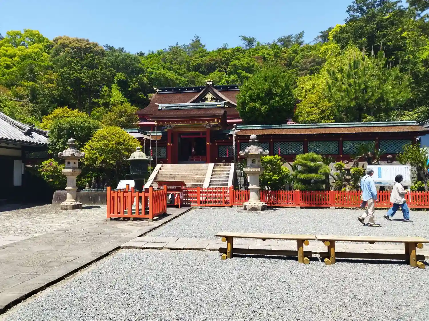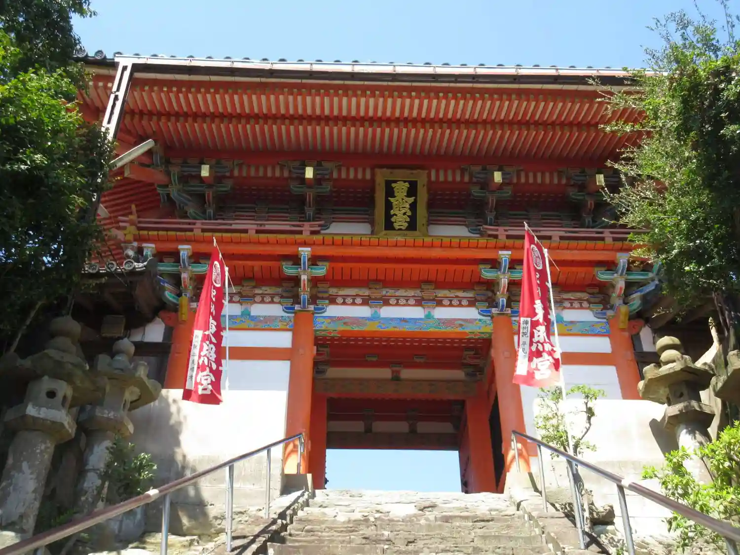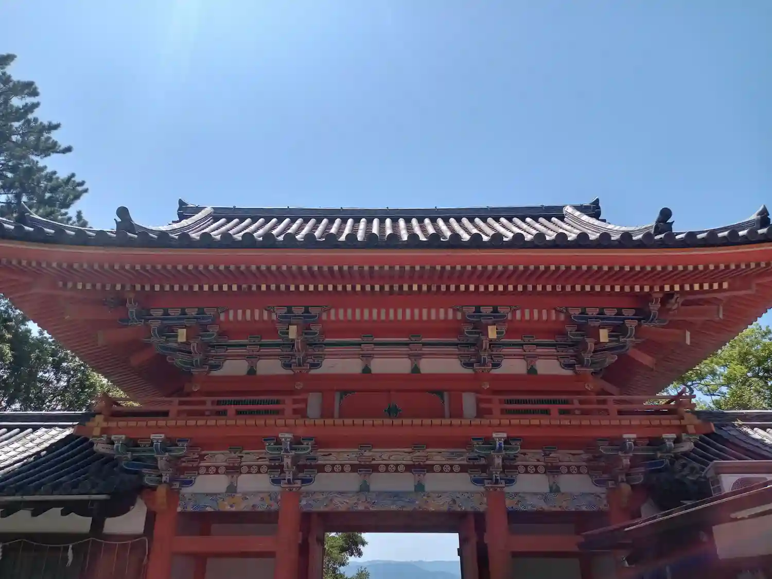 関西随一といわれる朱塗りの楼門は見応えあり。