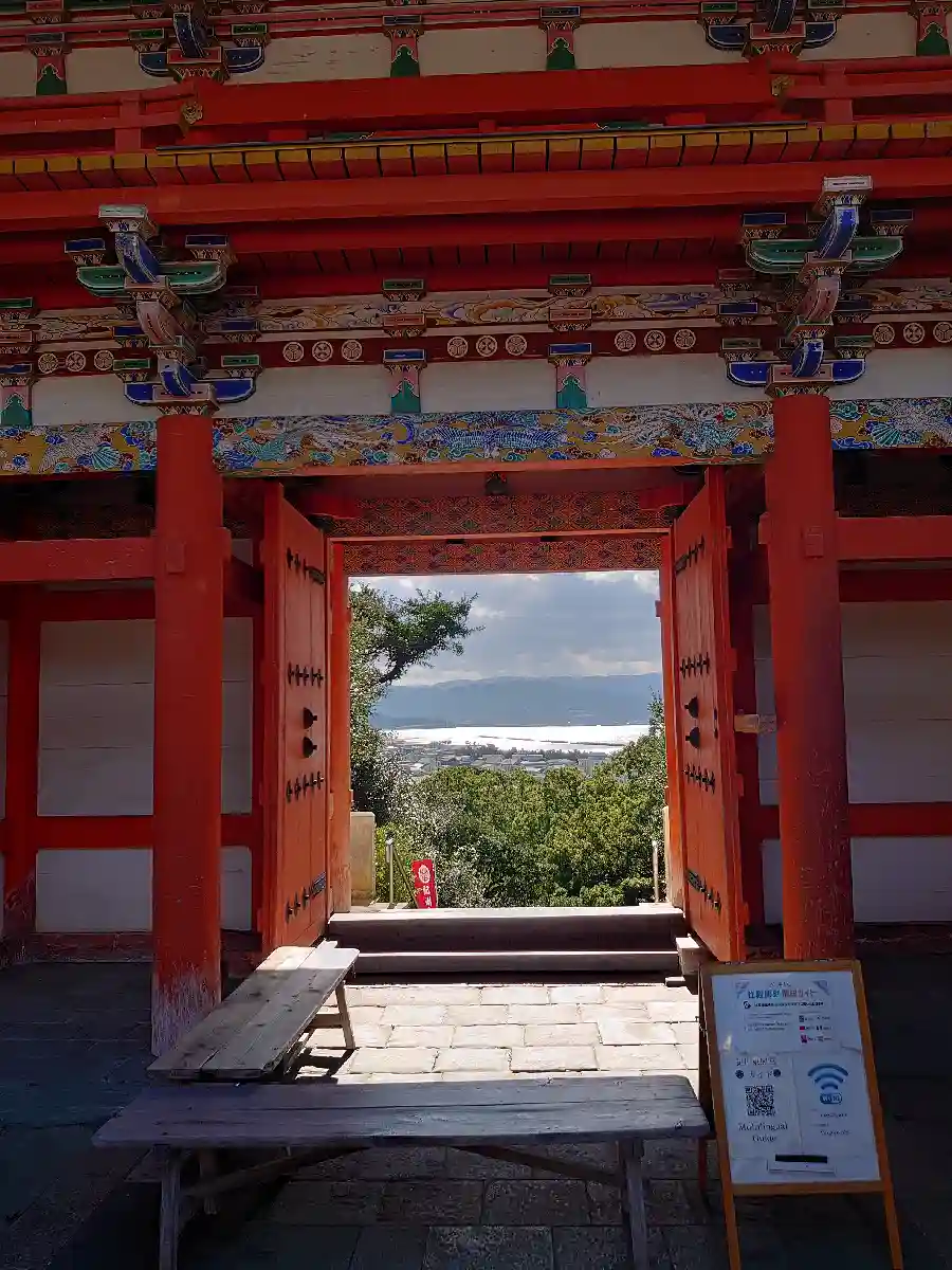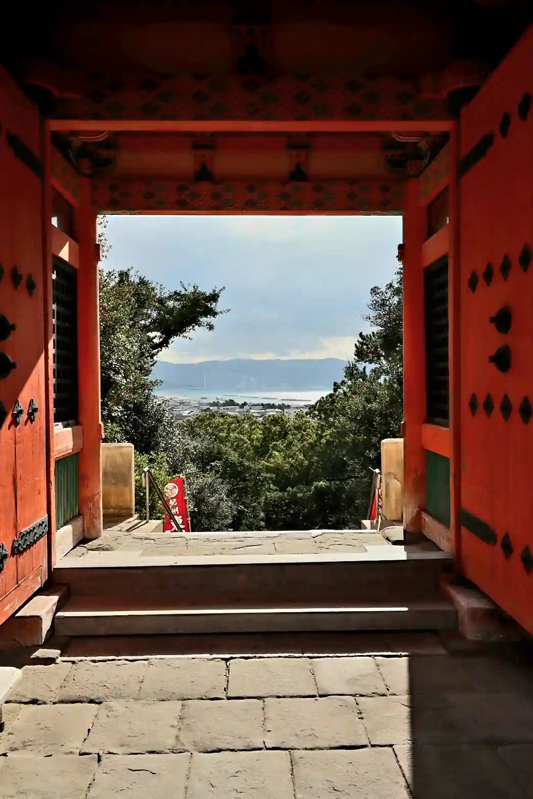 楼門をくぐってから振り返ると、門の向こうには和歌浦の海