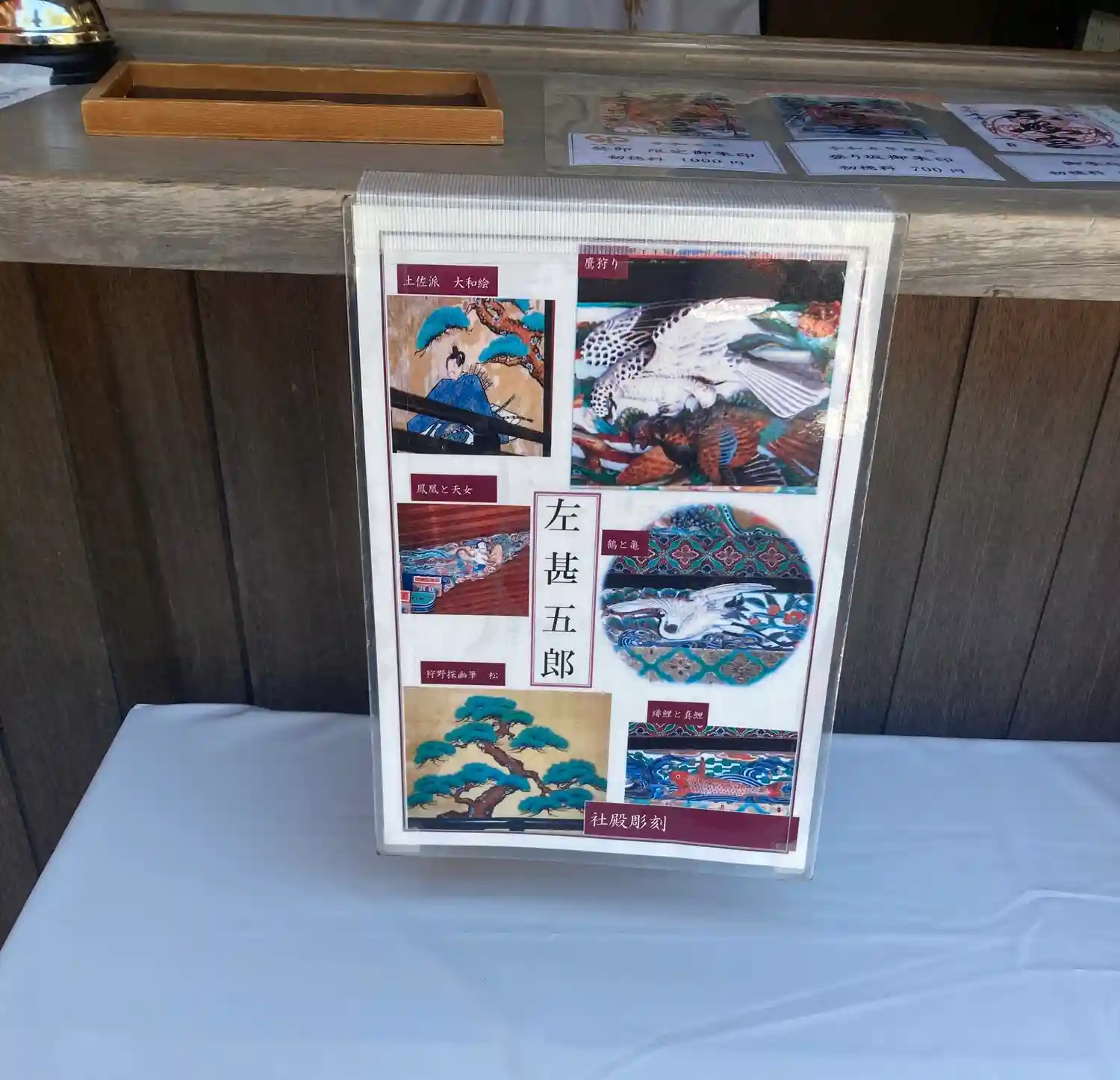 社務所 受付の社殿彫刻説明。(拝殿、本殿は撮影禁止)