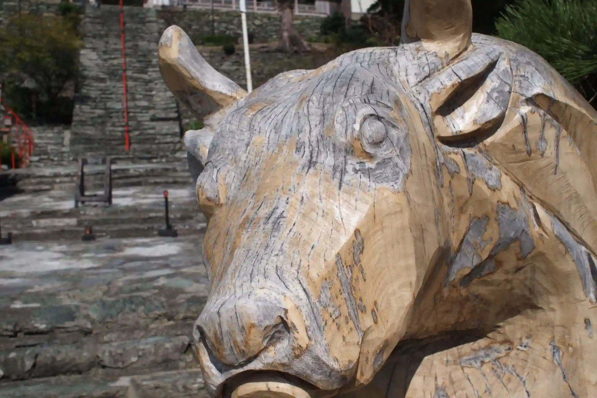 天神さんといえば牛ですが、ここは木彫りなんですね~(n*´ω`*n)