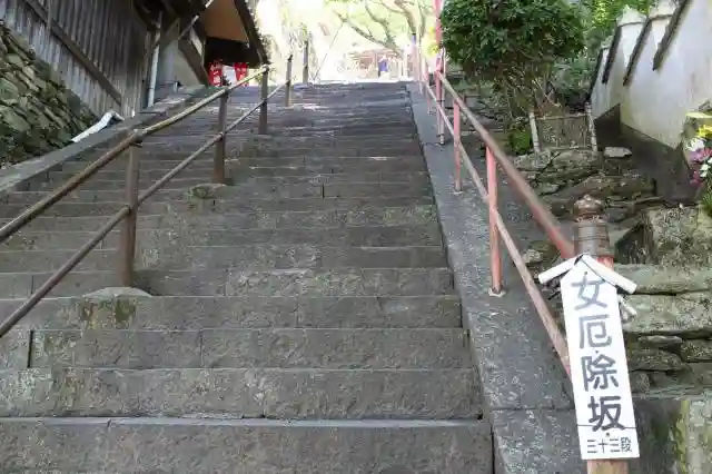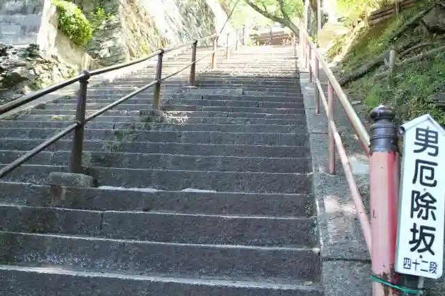 参詣者泣かせの急坂(結縁坂:けちえんざか)と言われている、楼門から231段の急な石段は登り甲斐あり。