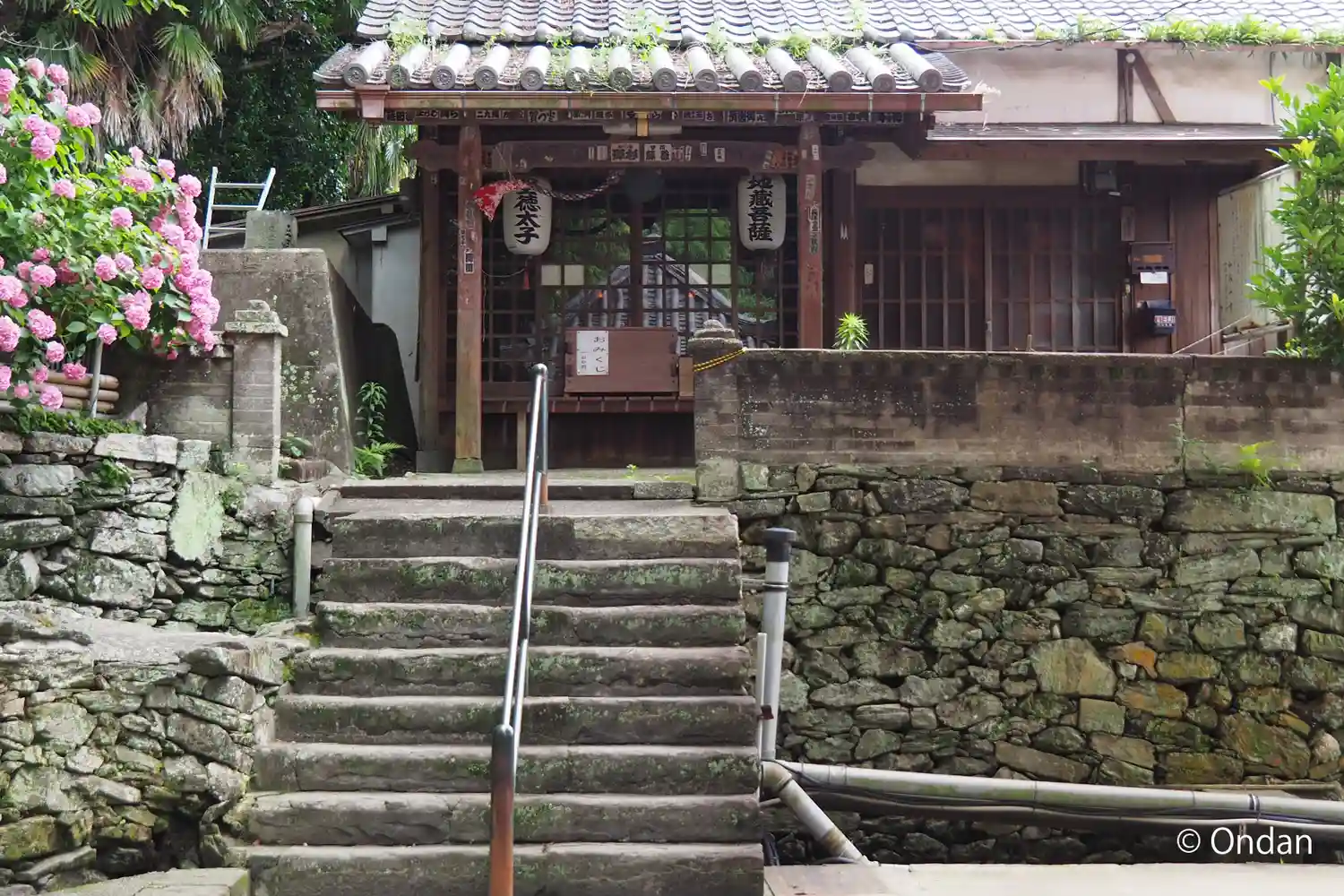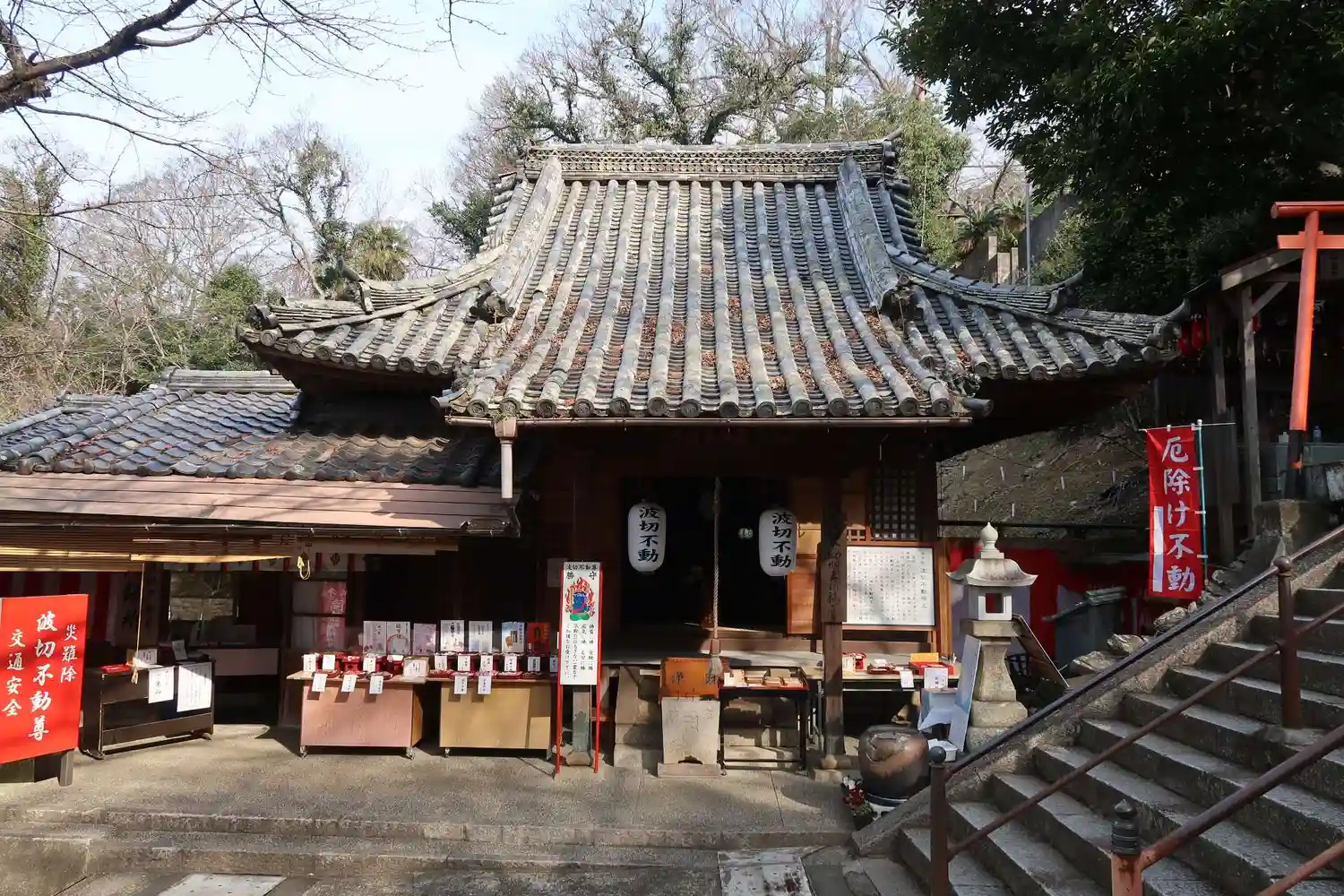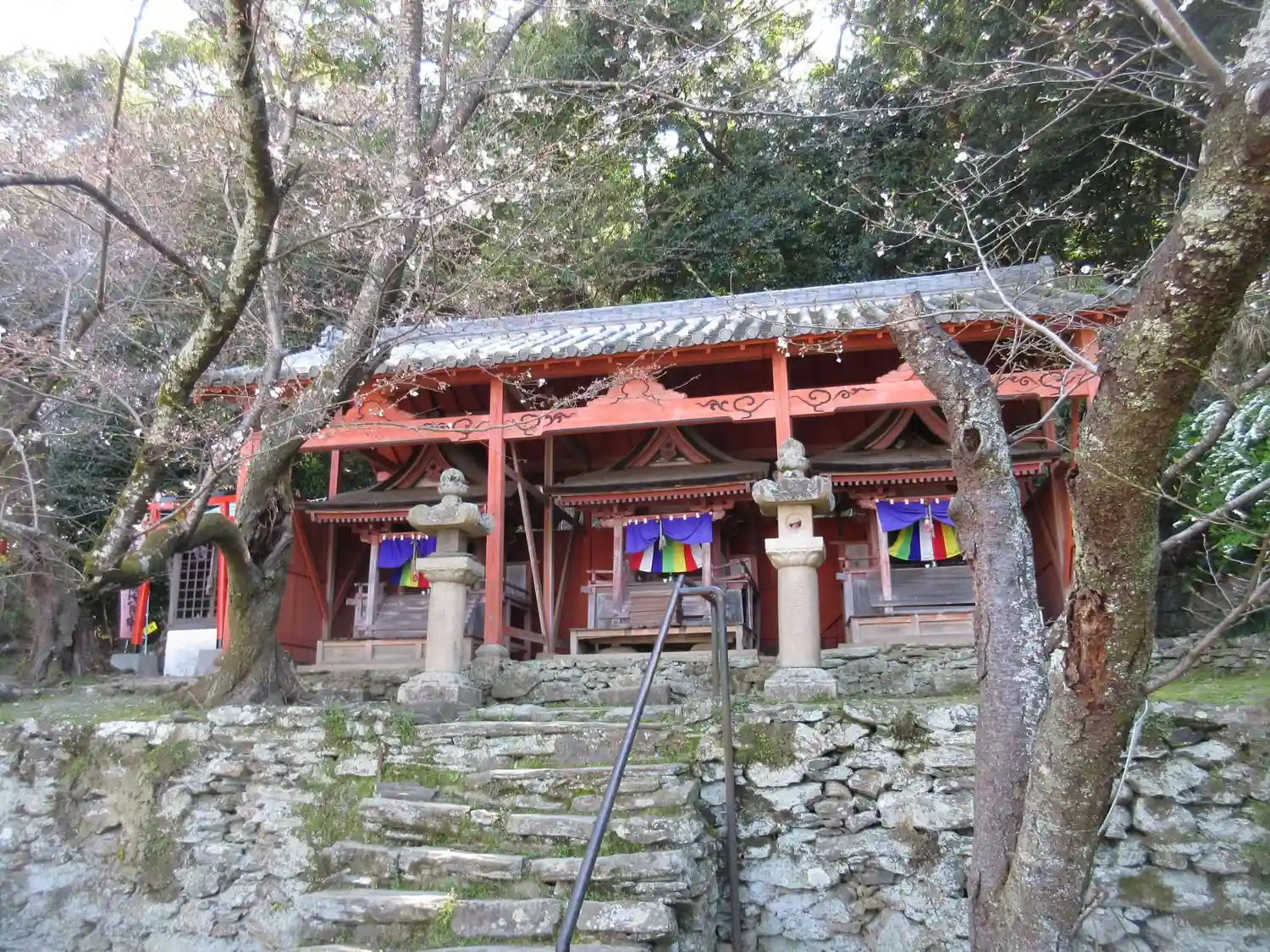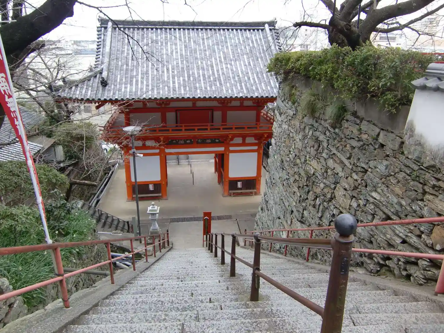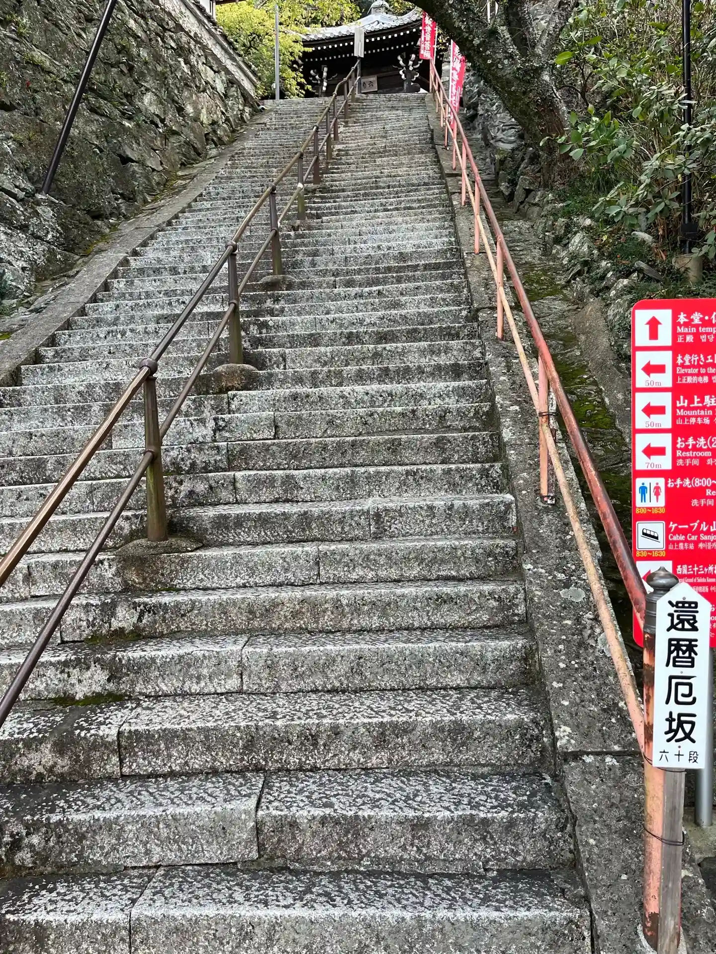 入り口から上の本堂まで長い階段があります