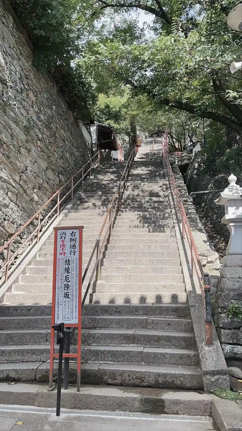 参詣者泣かせの急坂(結縁坂:けちえんざか)と言われている、楼門から231段の急な石段は登り甲斐あり。