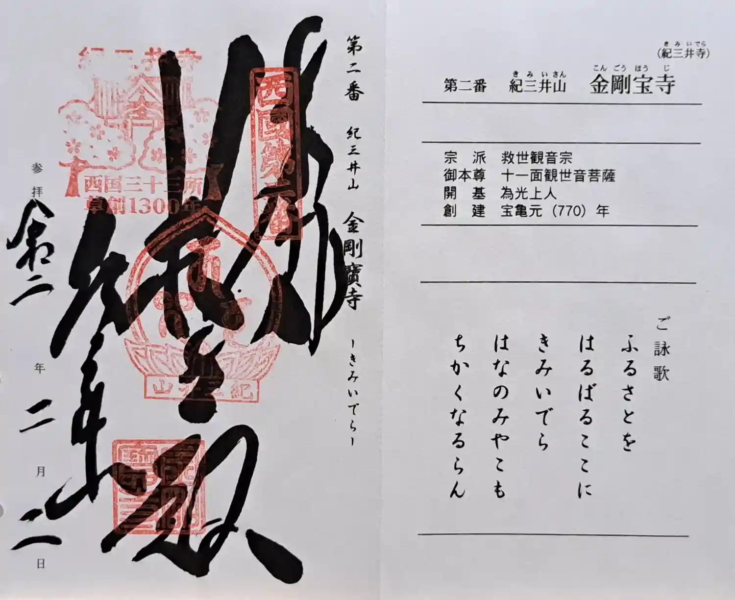 紀三井寺(金剛宝寺) 西国三十三観音霊場 重ね印