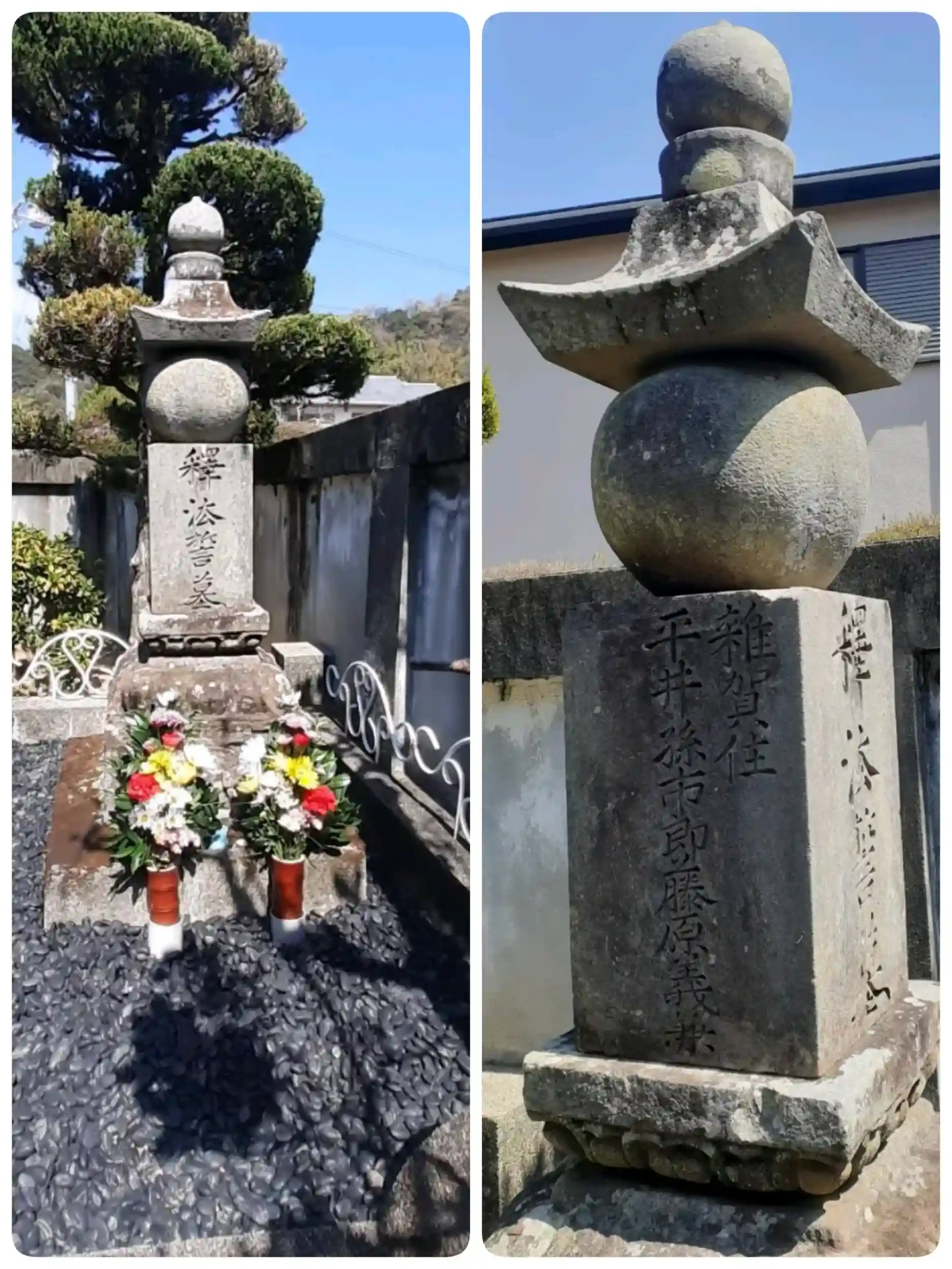 雑賀孫一ゆかりの「平井孫市郎藤原義兼」の墓石🪦が残され、孫一が深く関わった寺とされます。孫一の身を守った阿弥陀如来像が祀られている🙏。