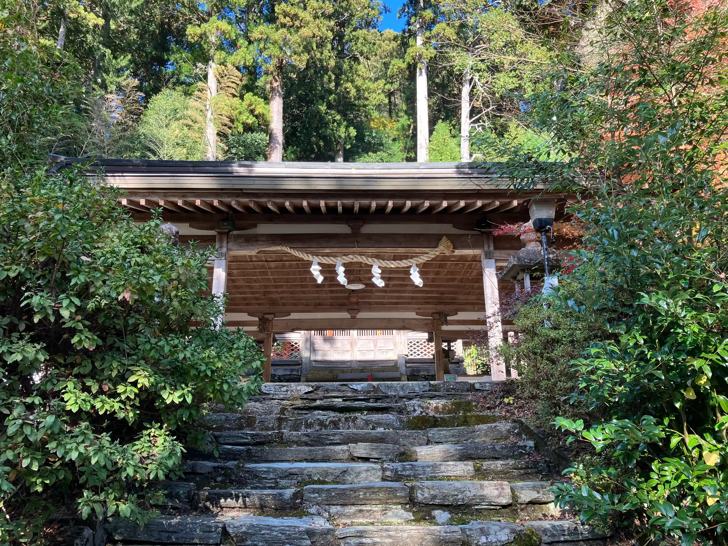 かつては神仏習合しており、神宮寺があった名残として大日堂が残る。室町時代の建築で重文指定されている。