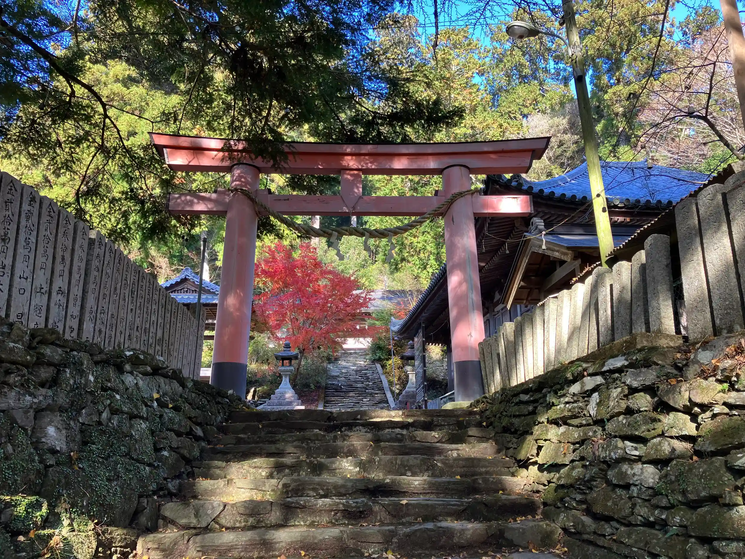 現在の本殿は1462年の建築で重文。織田信長、羽柴秀吉の根来攻めの兵火を逃れ現在に伝わっている。